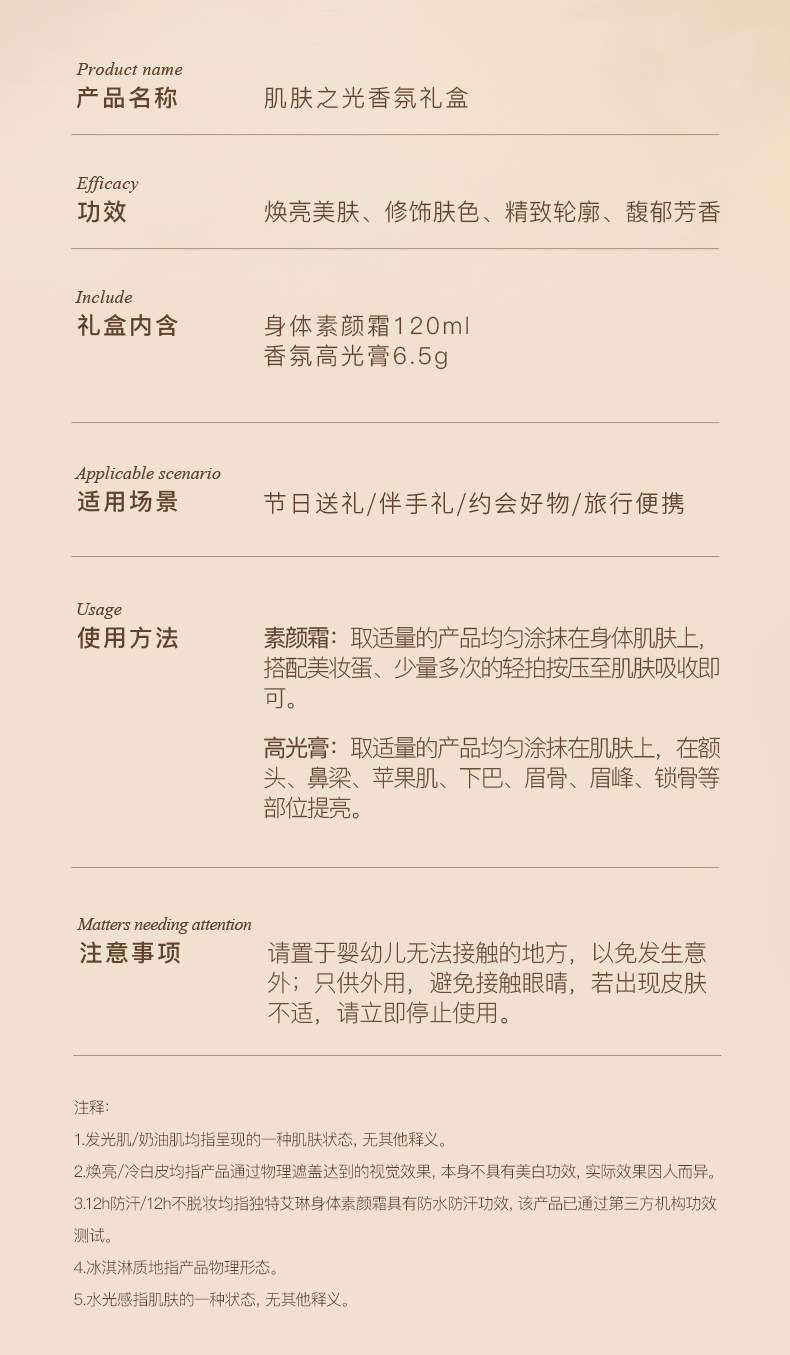 独特艾琳肌肤之光香氛礼盒(素颜霜120ml+香氛高光膏6.5g)