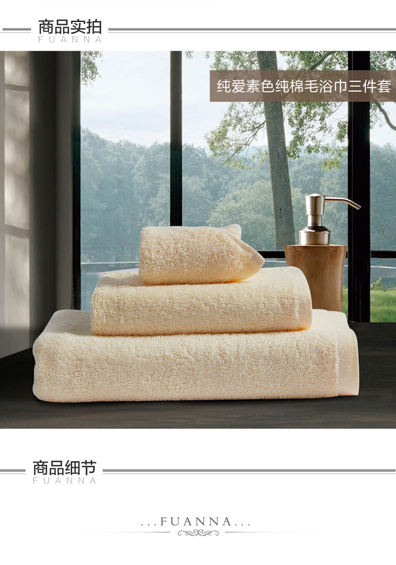 富安娜纯爱素色纯棉毛浴巾三件套