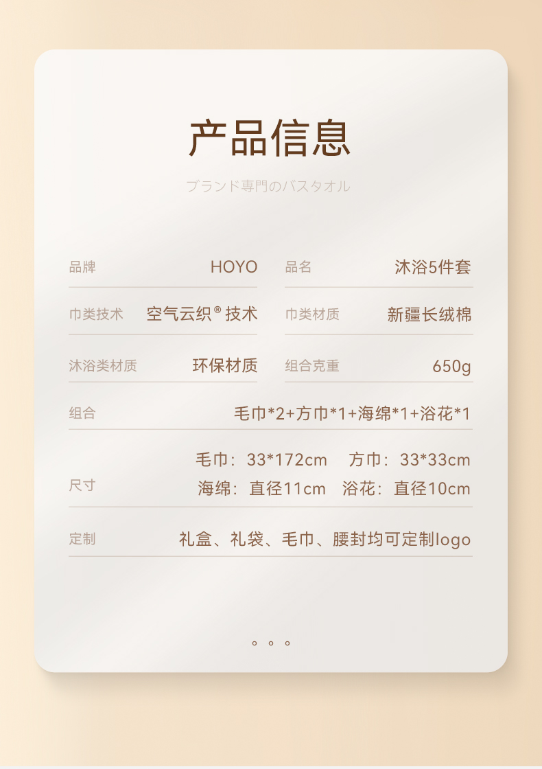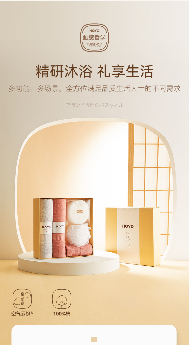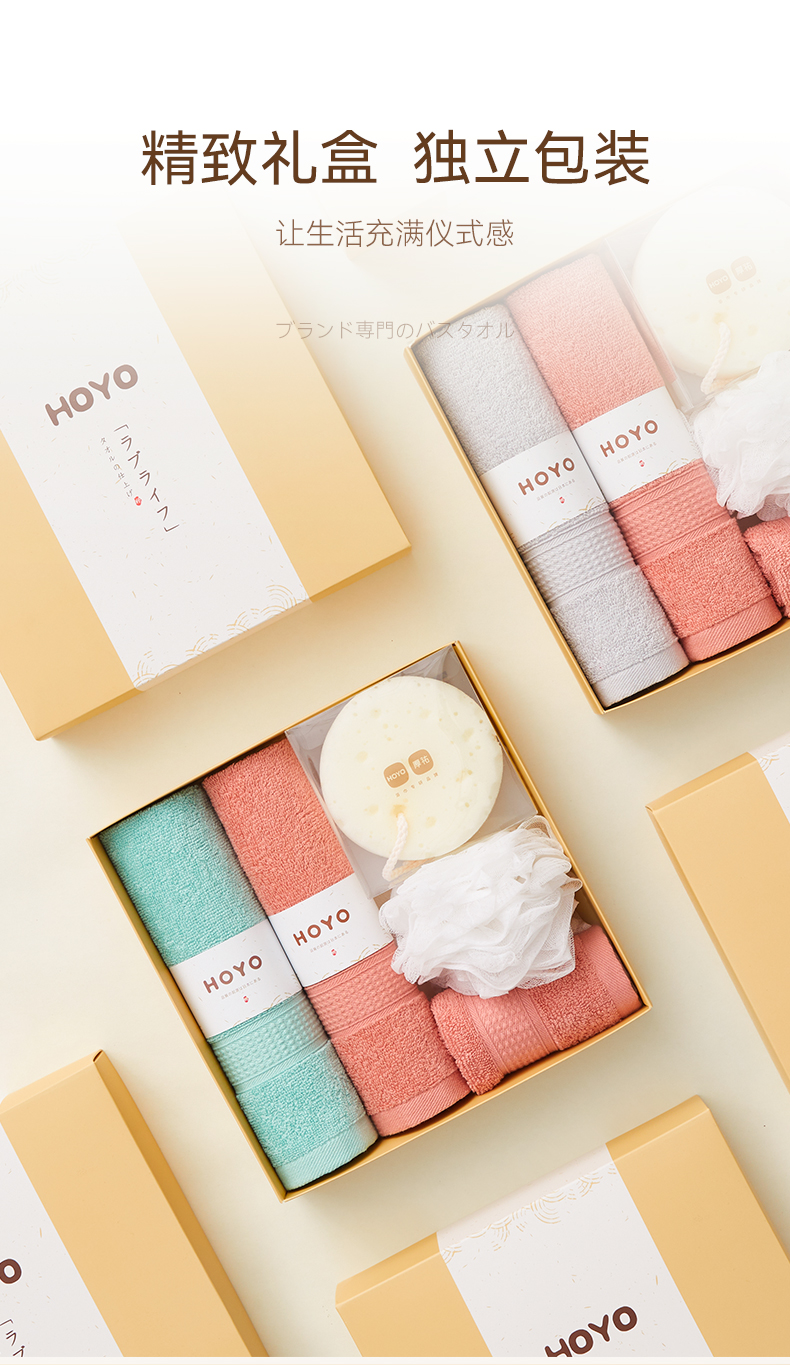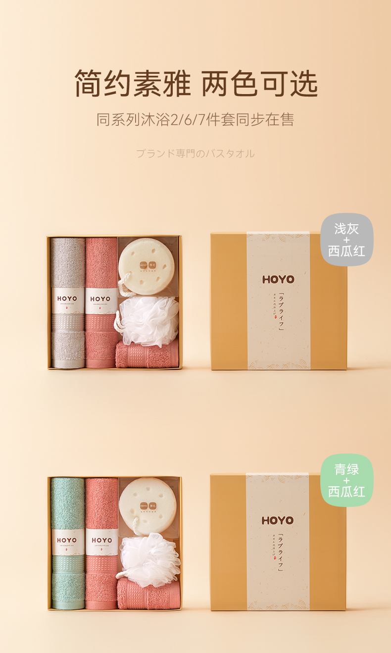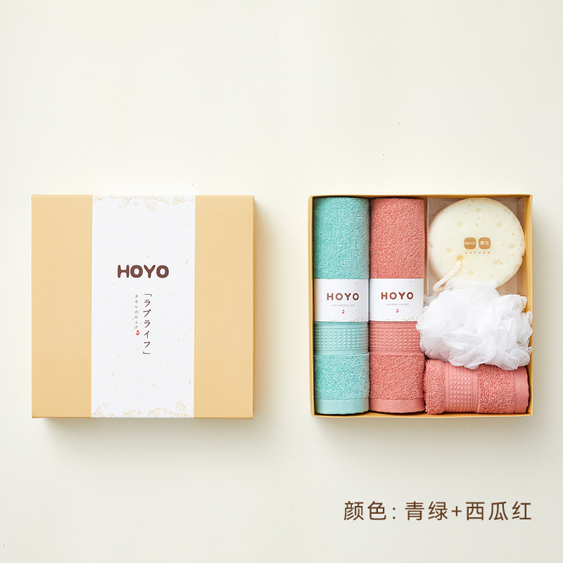 HOYO沐浴5件套(毛巾2条+方巾1条+浴花1个+海绵1块)7734