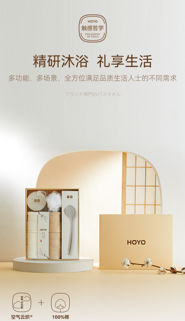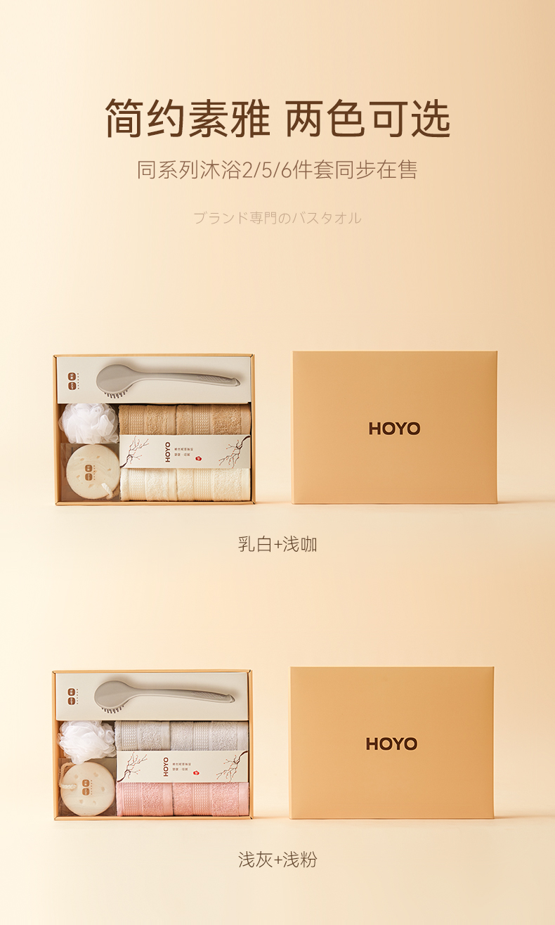 HOYO沐浴7件套7736(毛巾2条+方巾2条+浴花1个+海绵1块+沐浴刷1个)