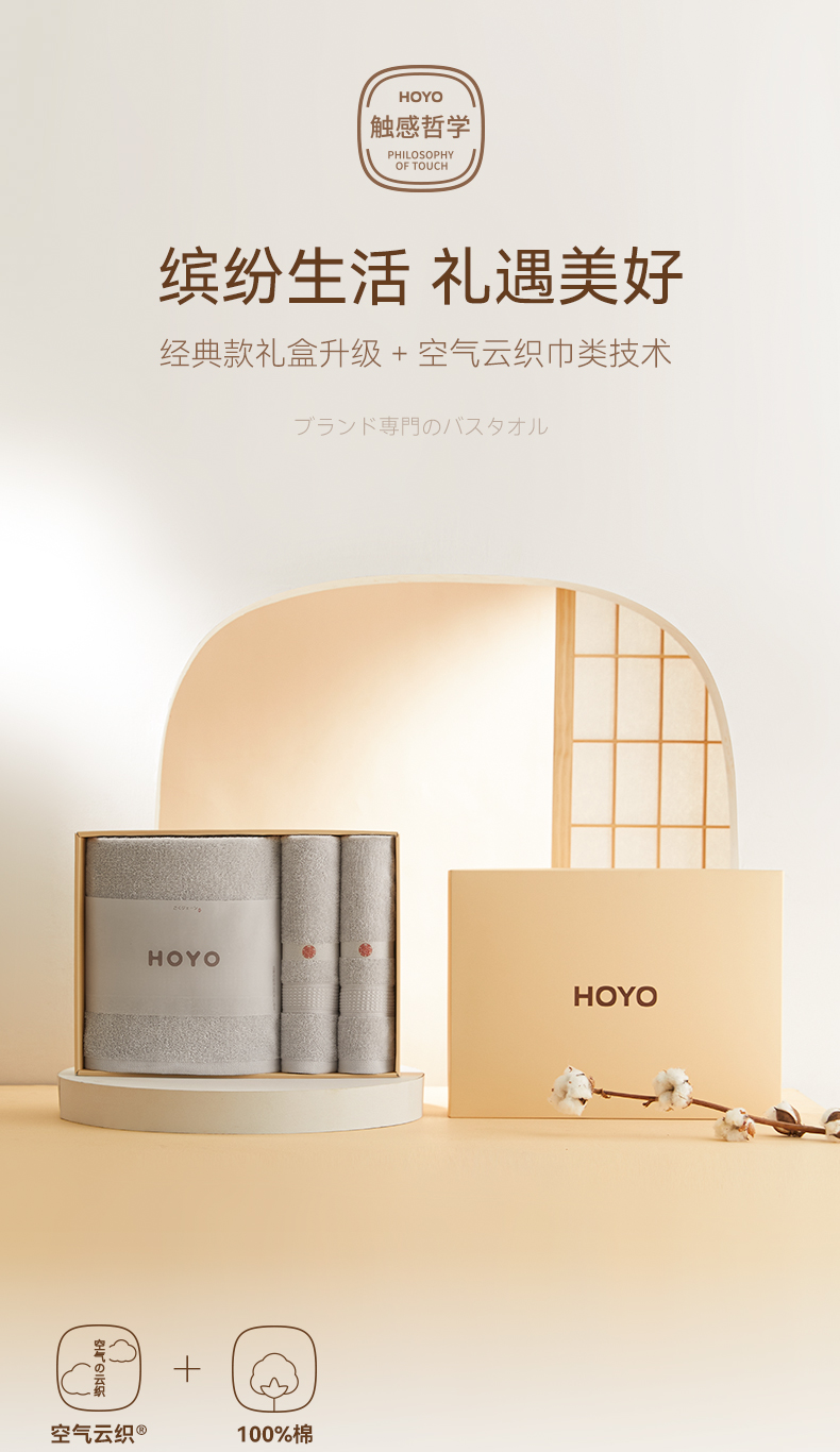 HOYO臻品长绒棉和风腾纹毛浴三件套7294(毛巾2条+浴巾1条)