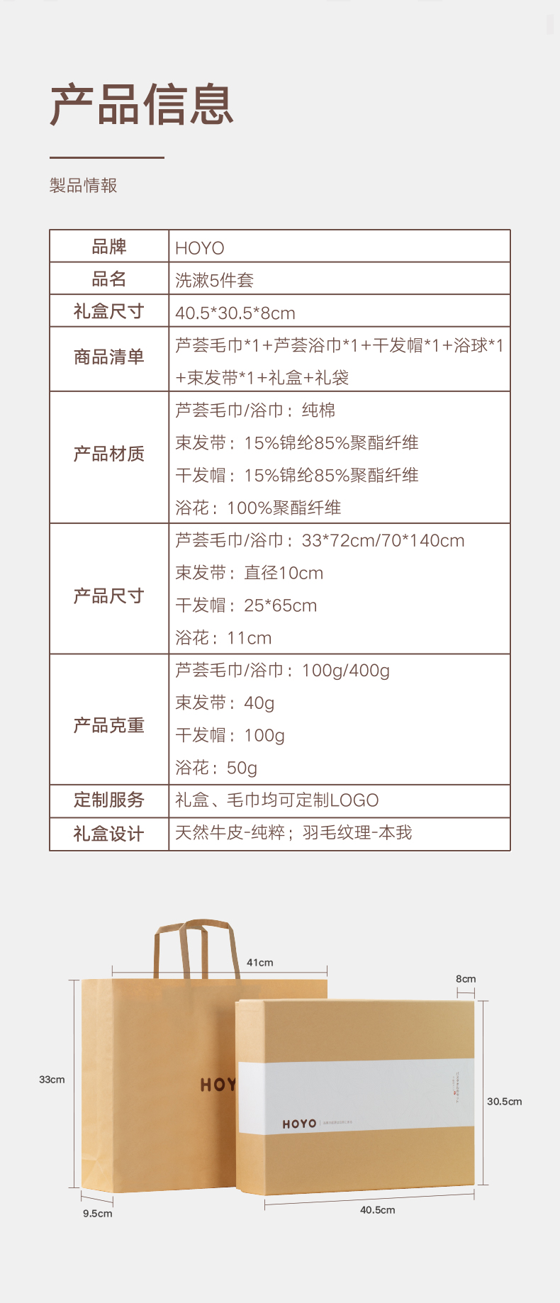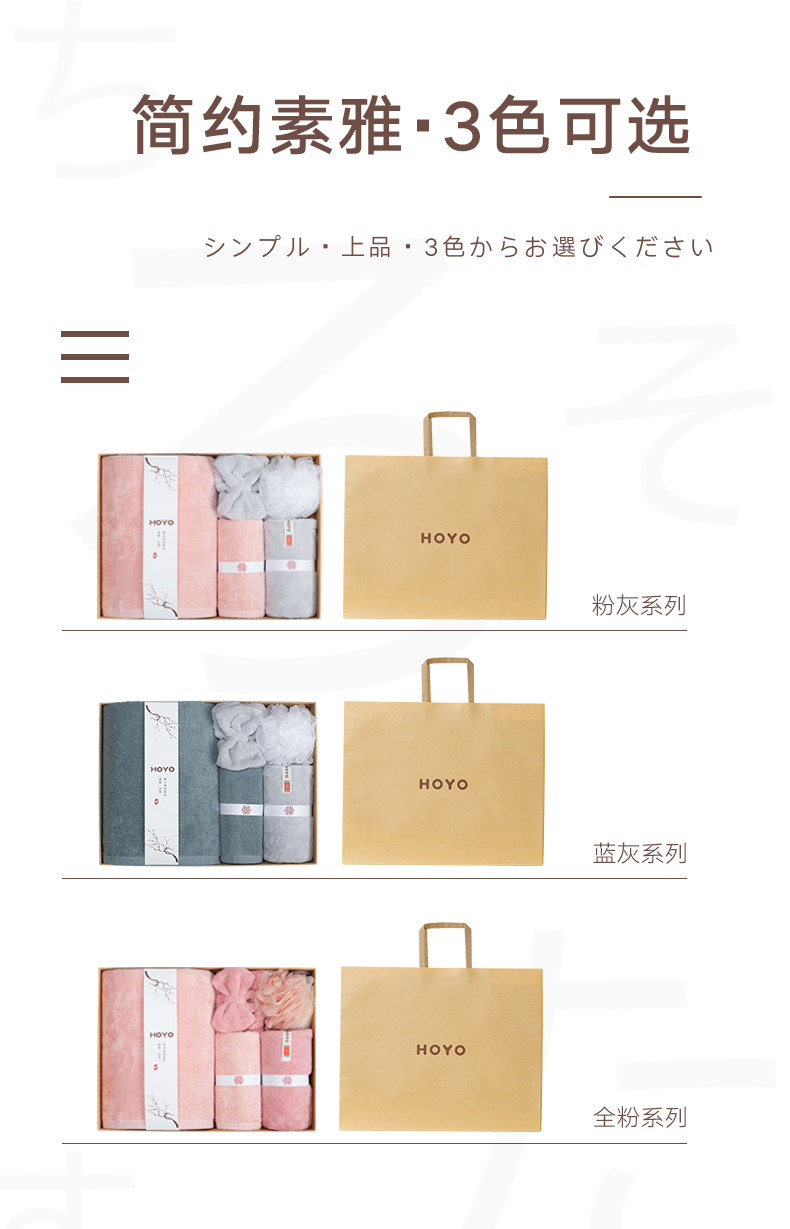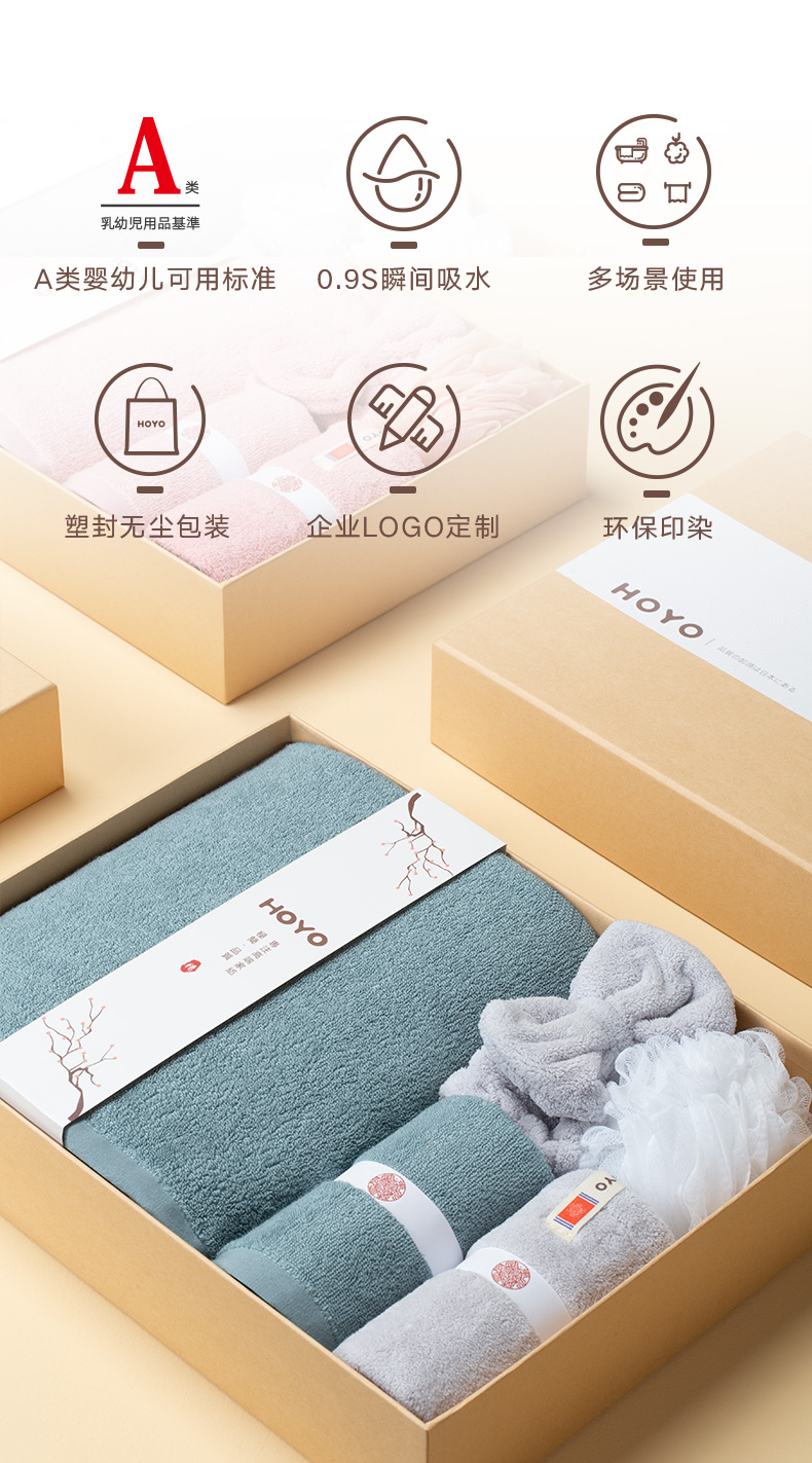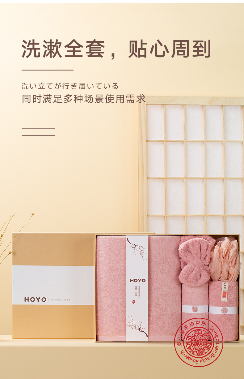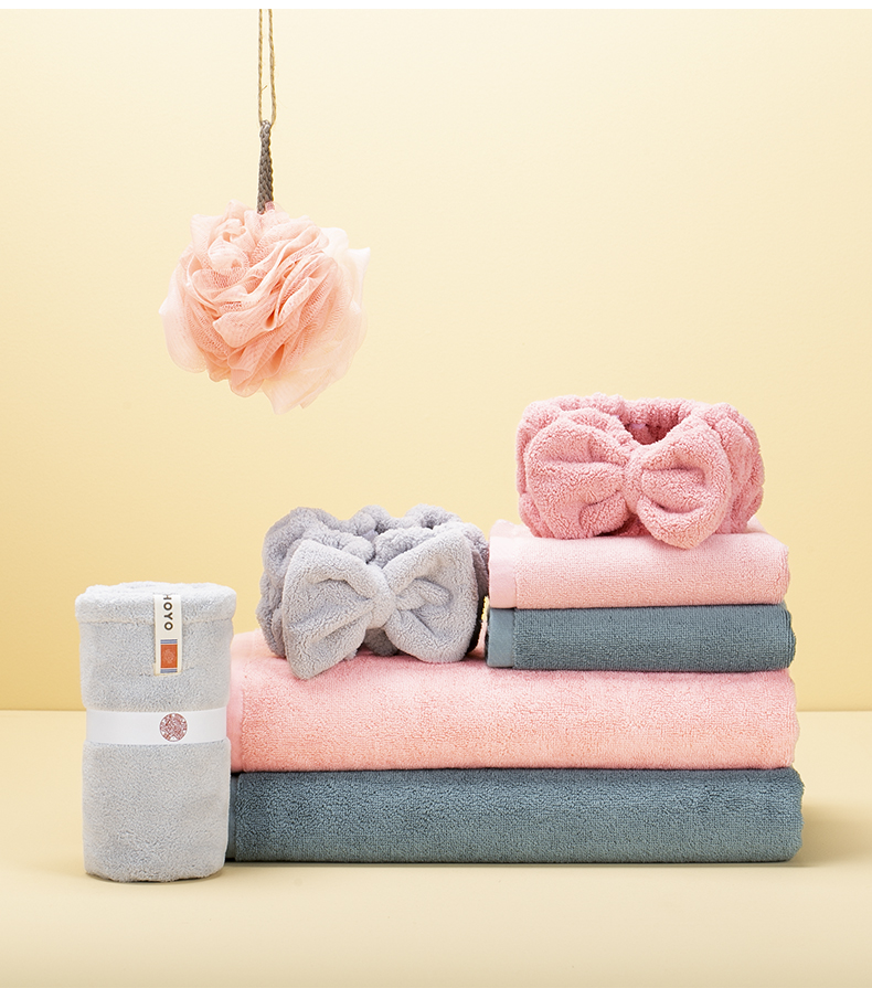 HOYO洗漱五件套7247(浴巾1条+毛巾1条+干发帽1条+束发带1个+浴花1个)