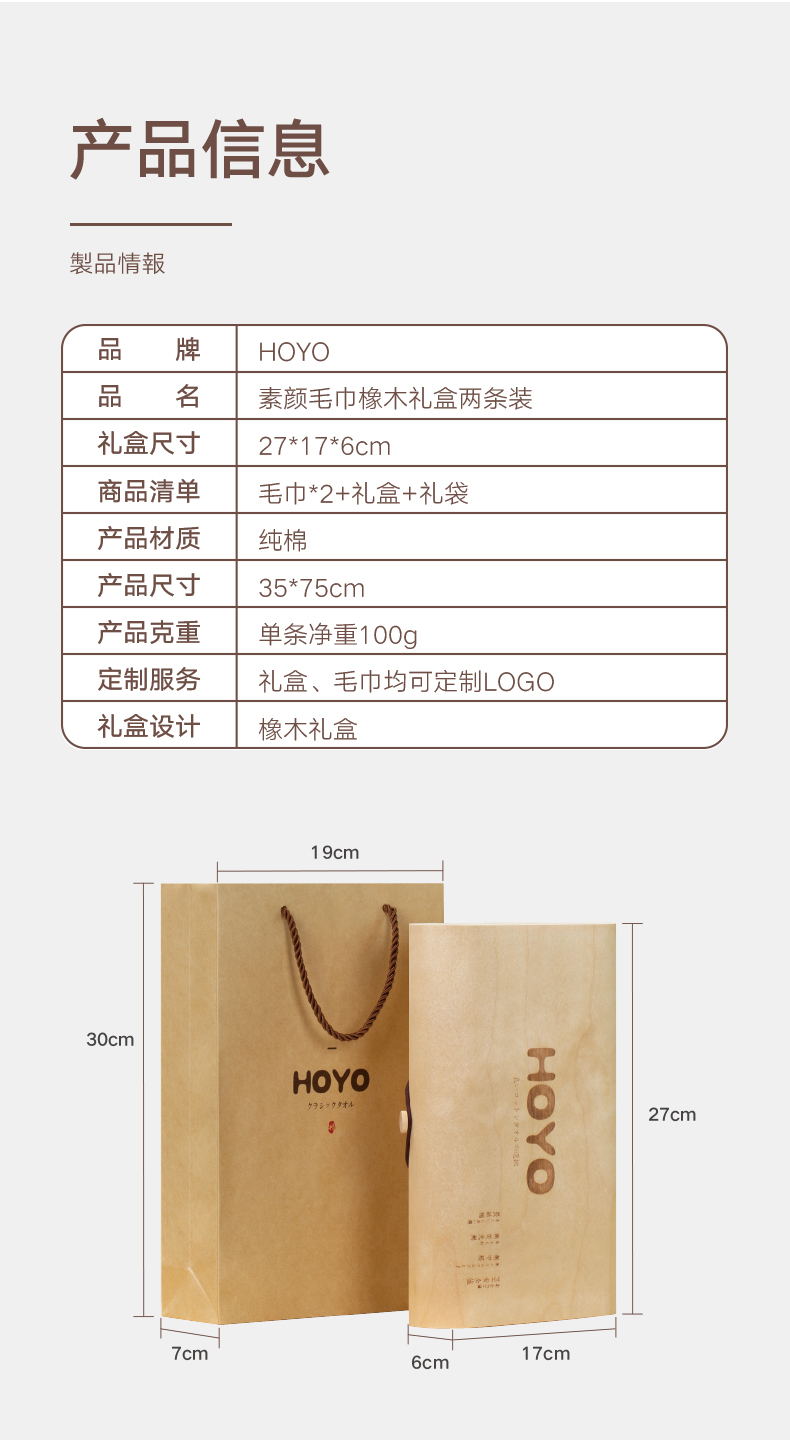 HOYO素颜木质礼盒毛巾两件套7293(毛巾2条)