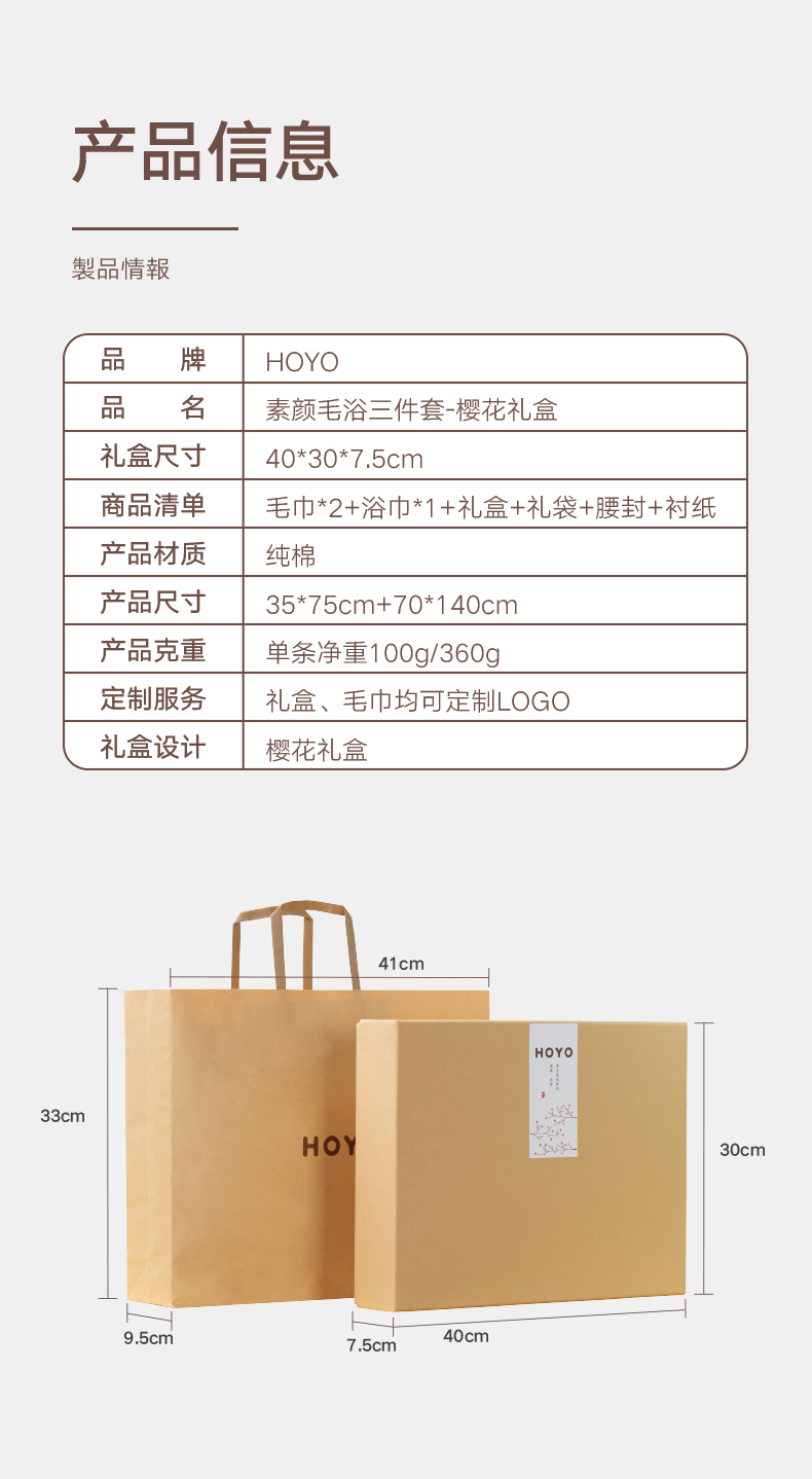 HOYO素颜樱花礼盒毛巾三件套7434(毛巾2条+浴巾1条)
