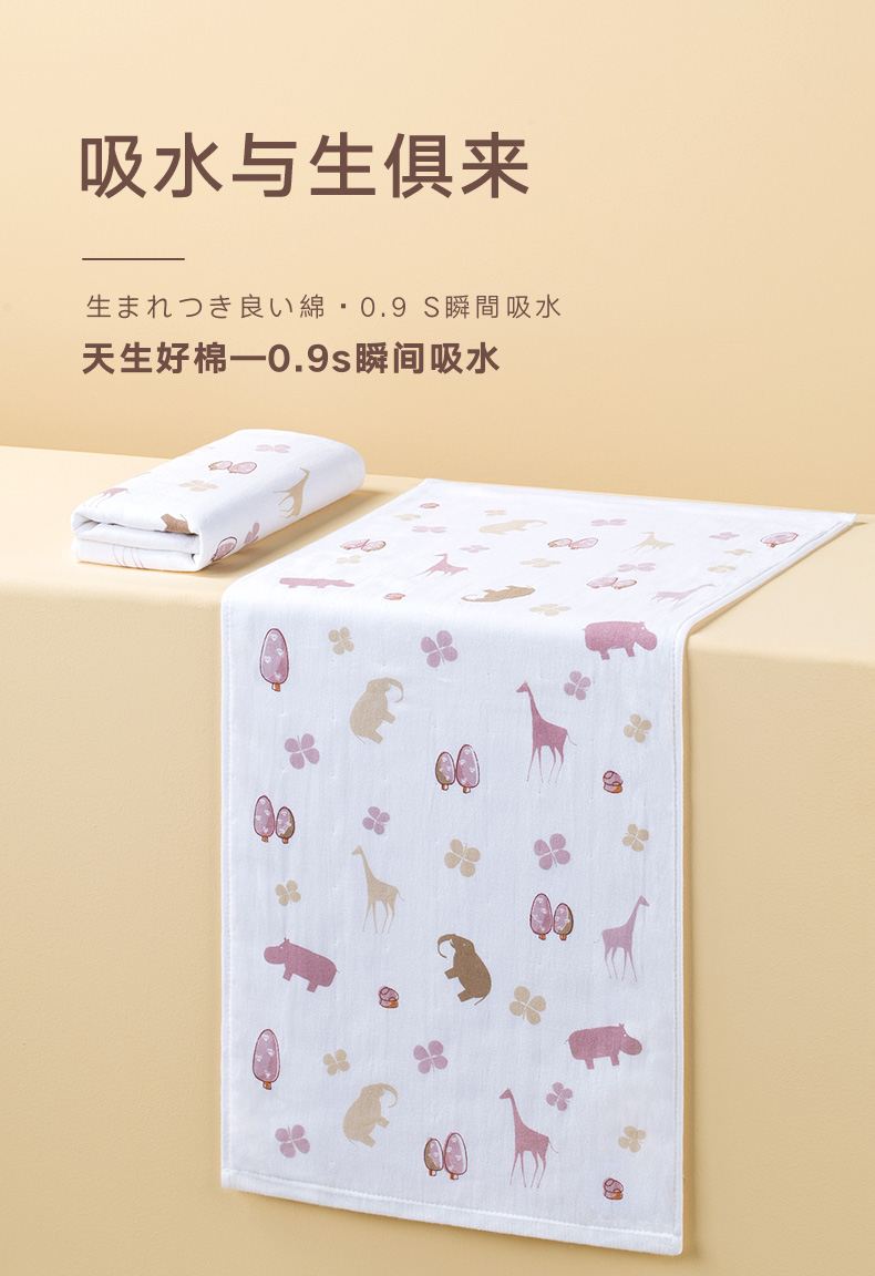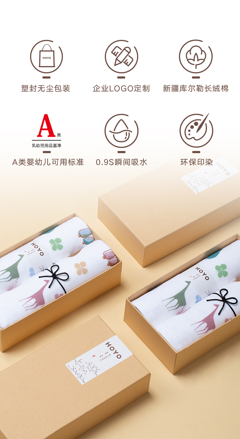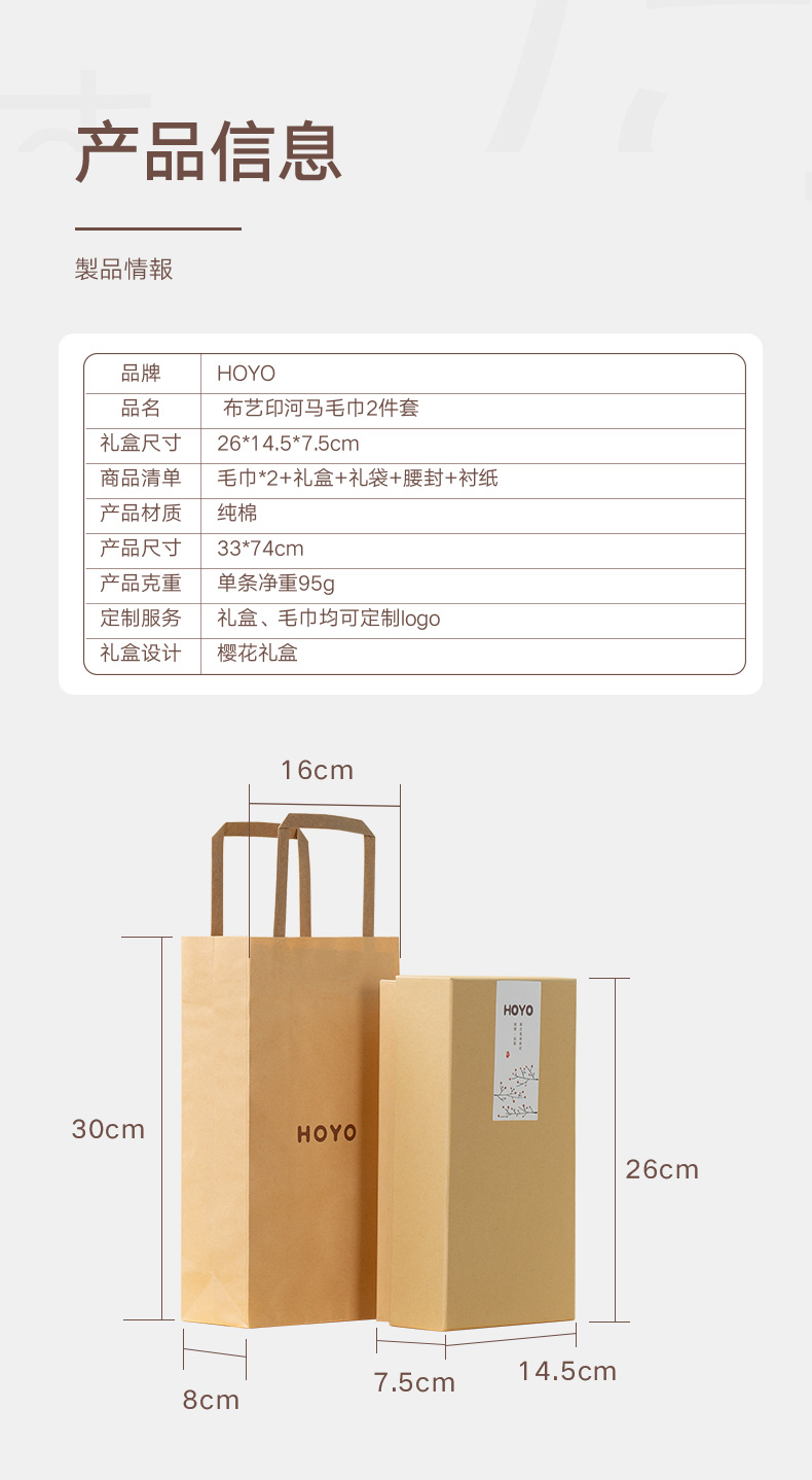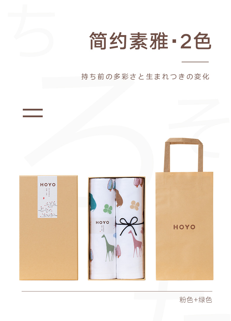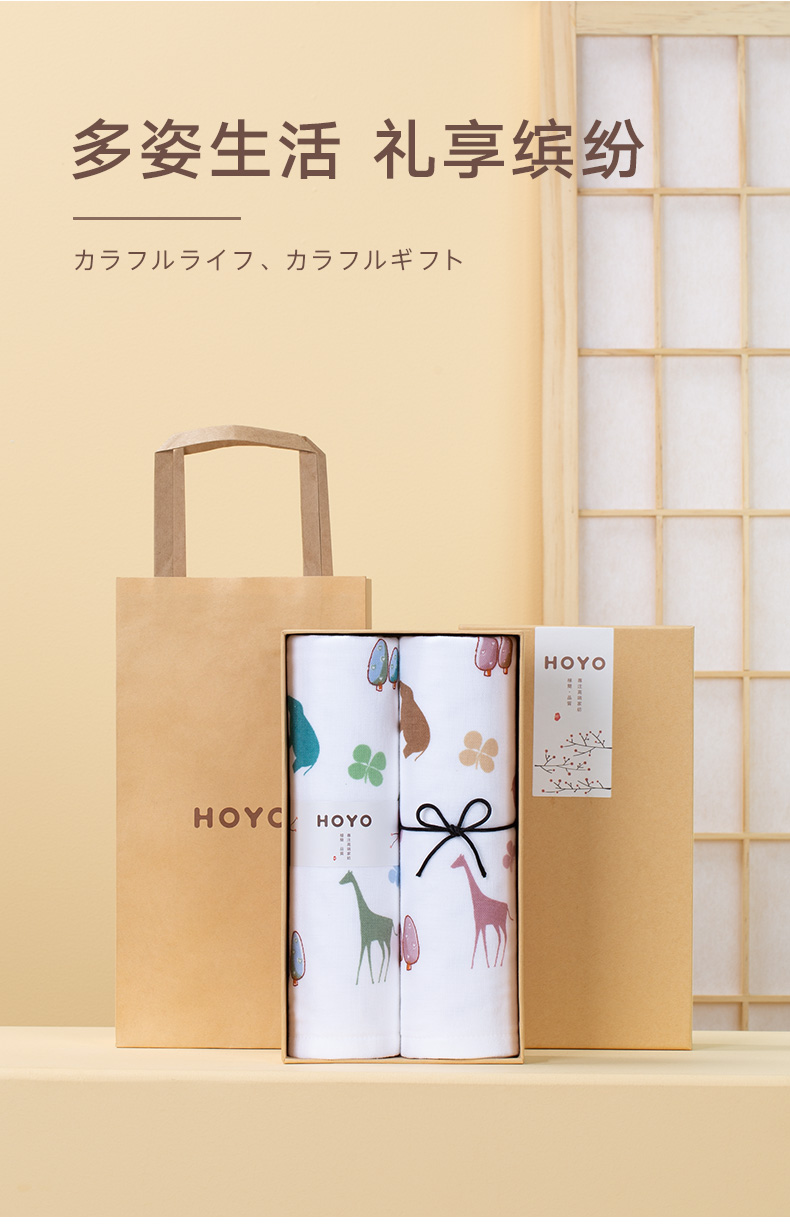 HOYO布艺印河马樱花礼盒毛巾两件套7357(毛巾2条)