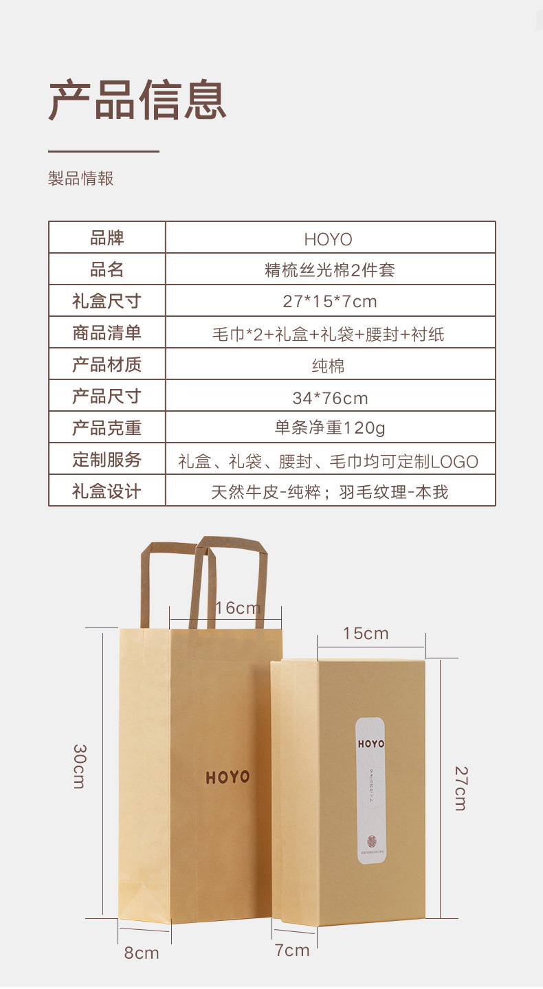 HOYO精梳丝光棉毛巾两件套7242(毛巾2条)