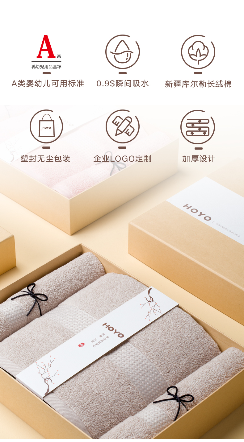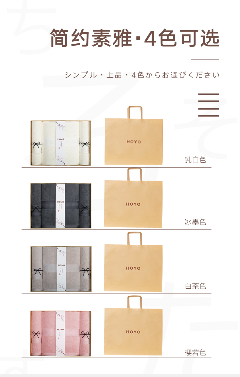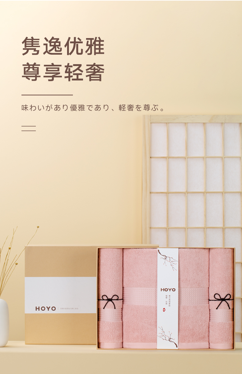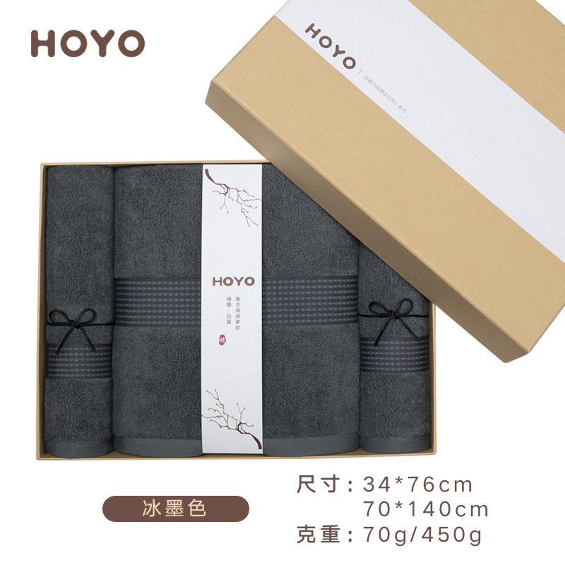 HOYO精梳丝光棉毛浴三件套7243(毛巾2条+浴巾1条)