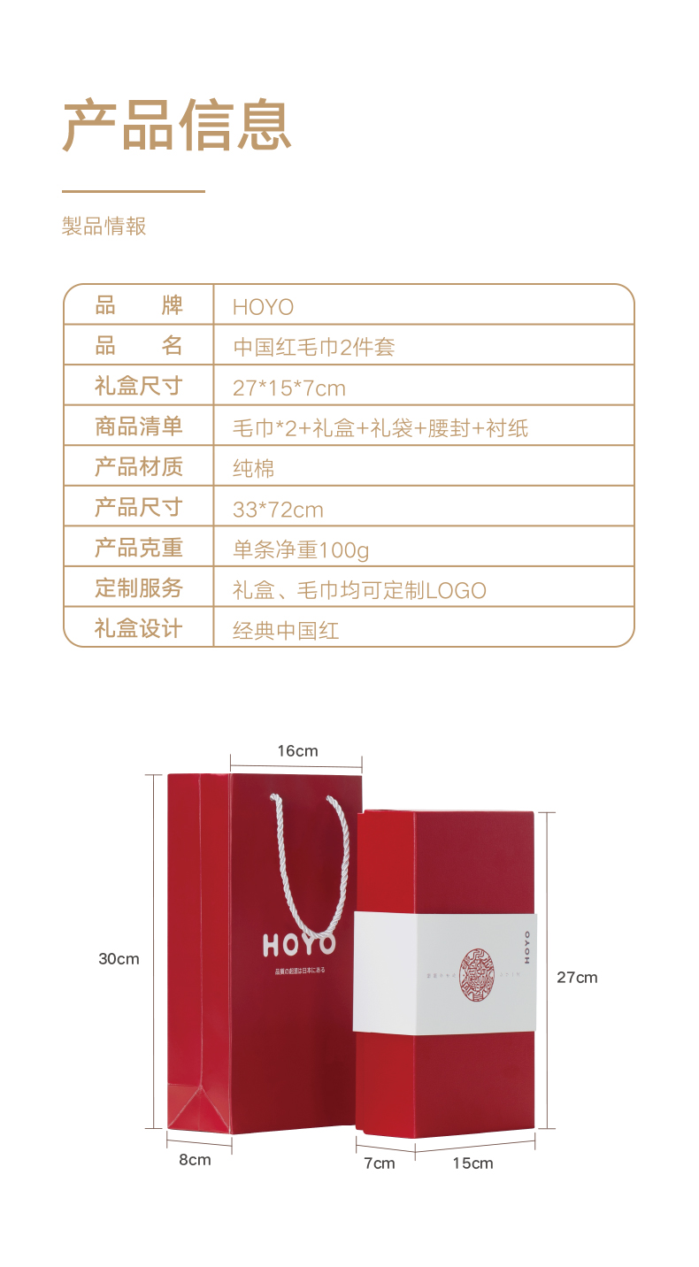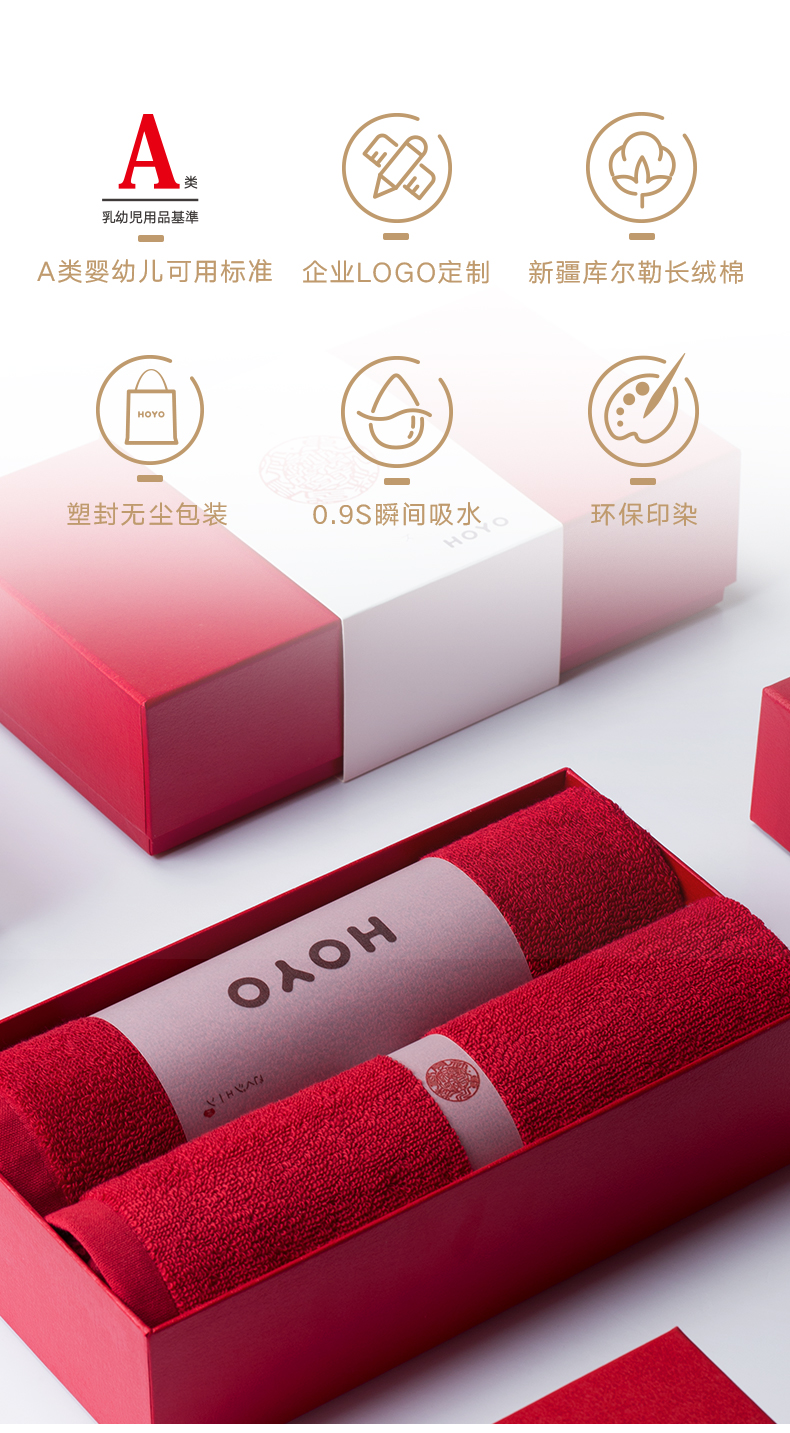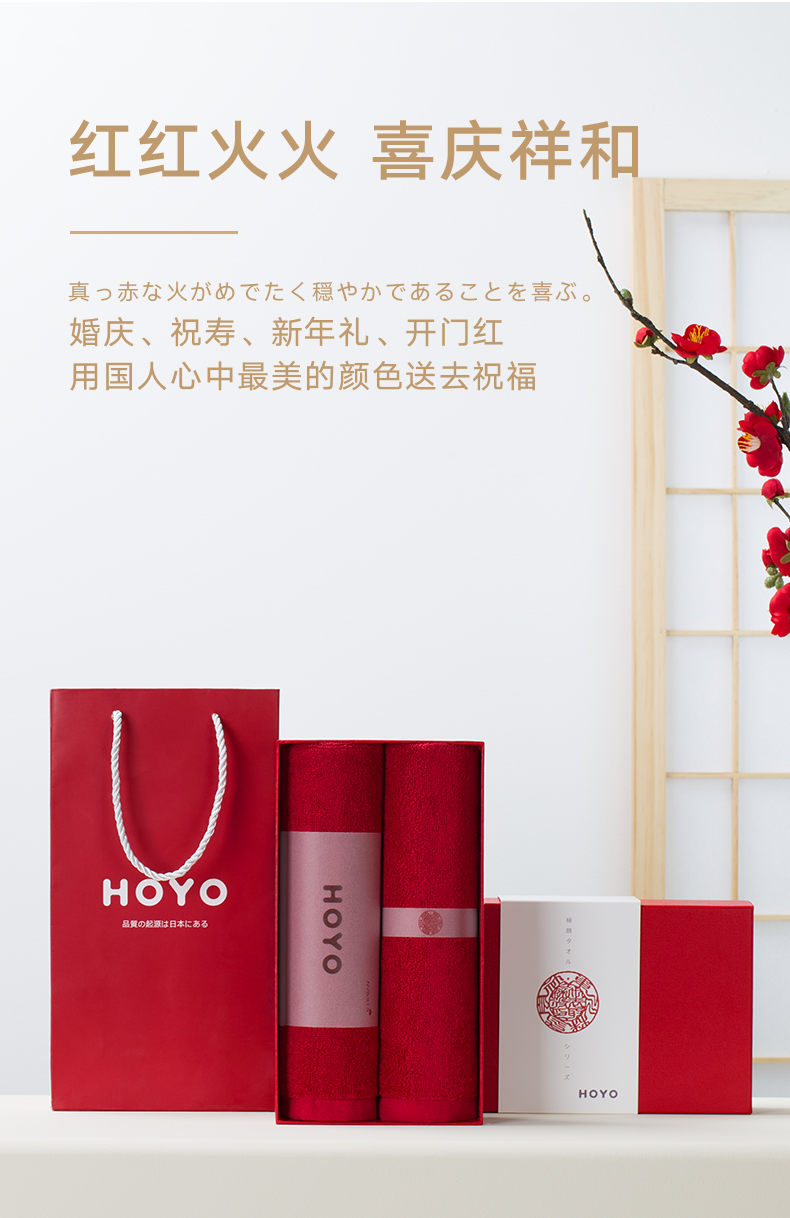 HOYO中国红毛巾2件套7240