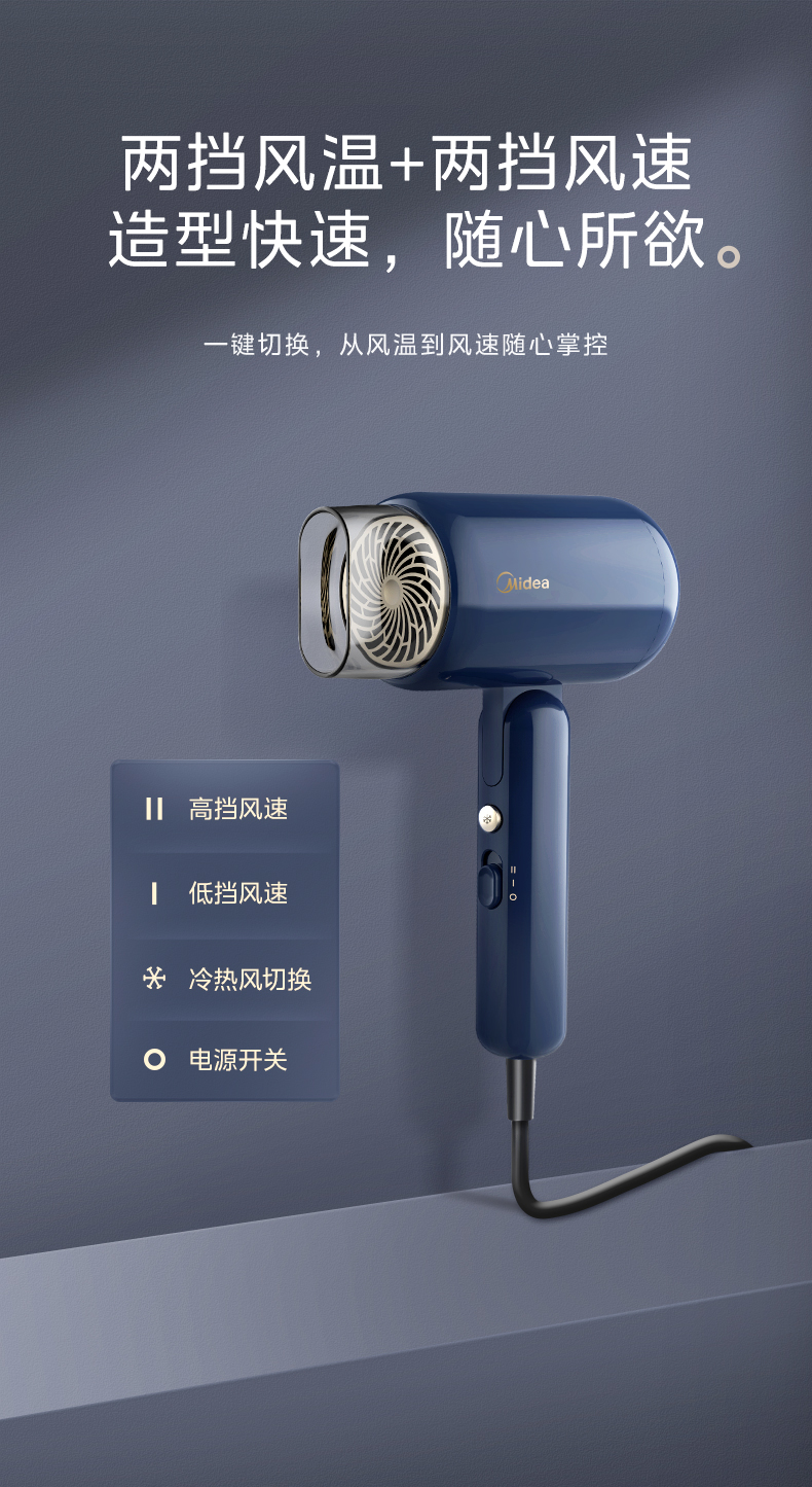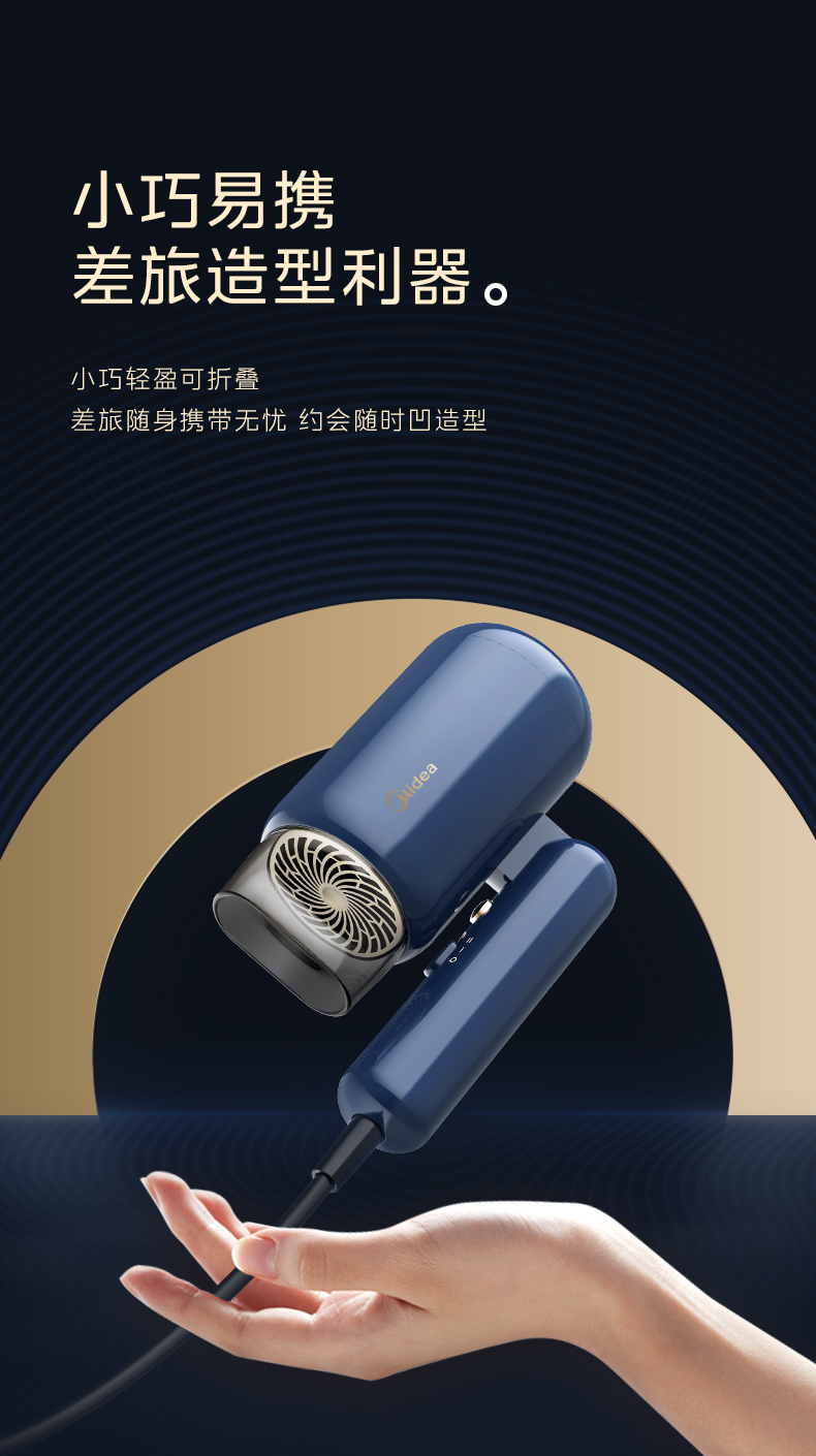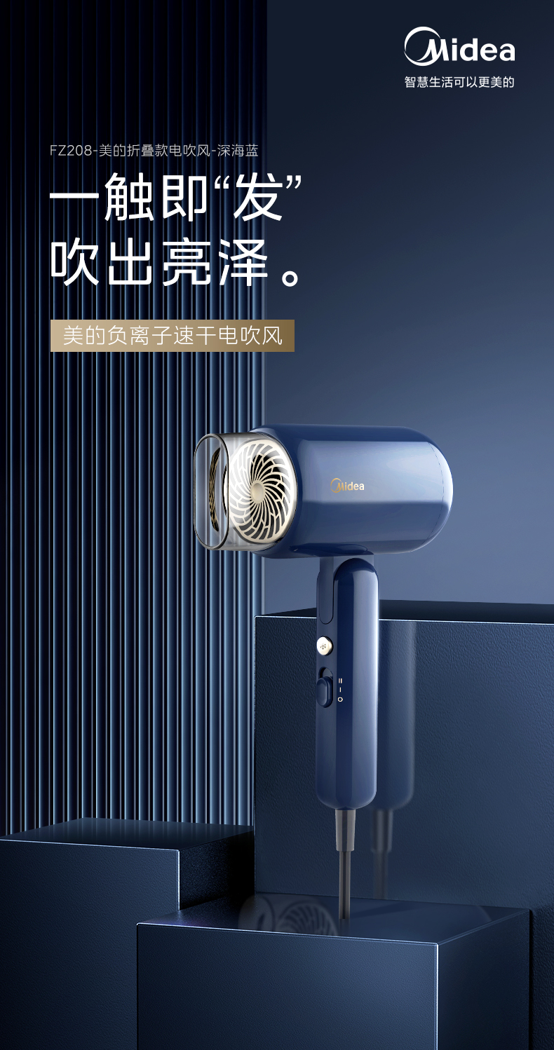 美的电吹风FZ208 折叠款-深海蓝(XS030100000079)