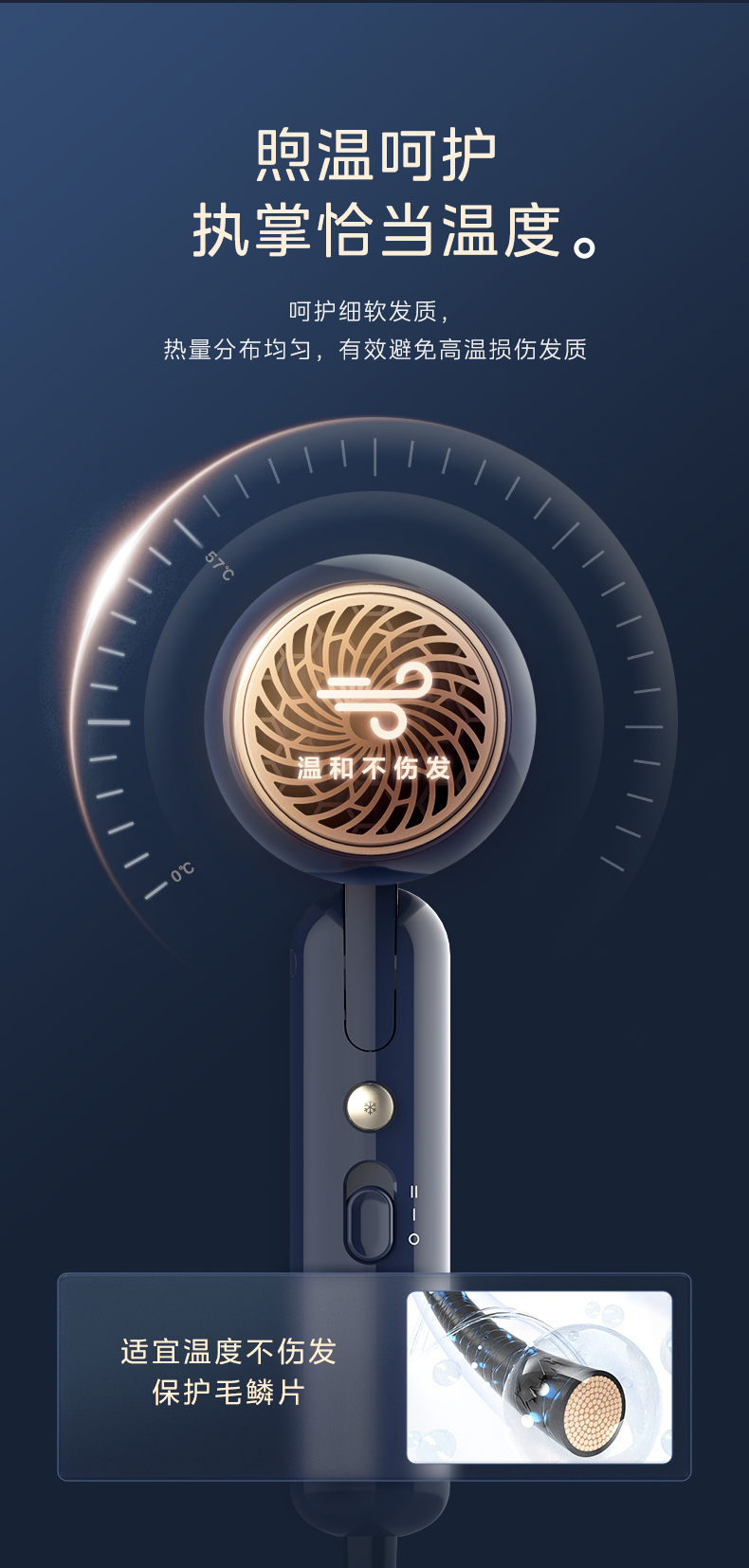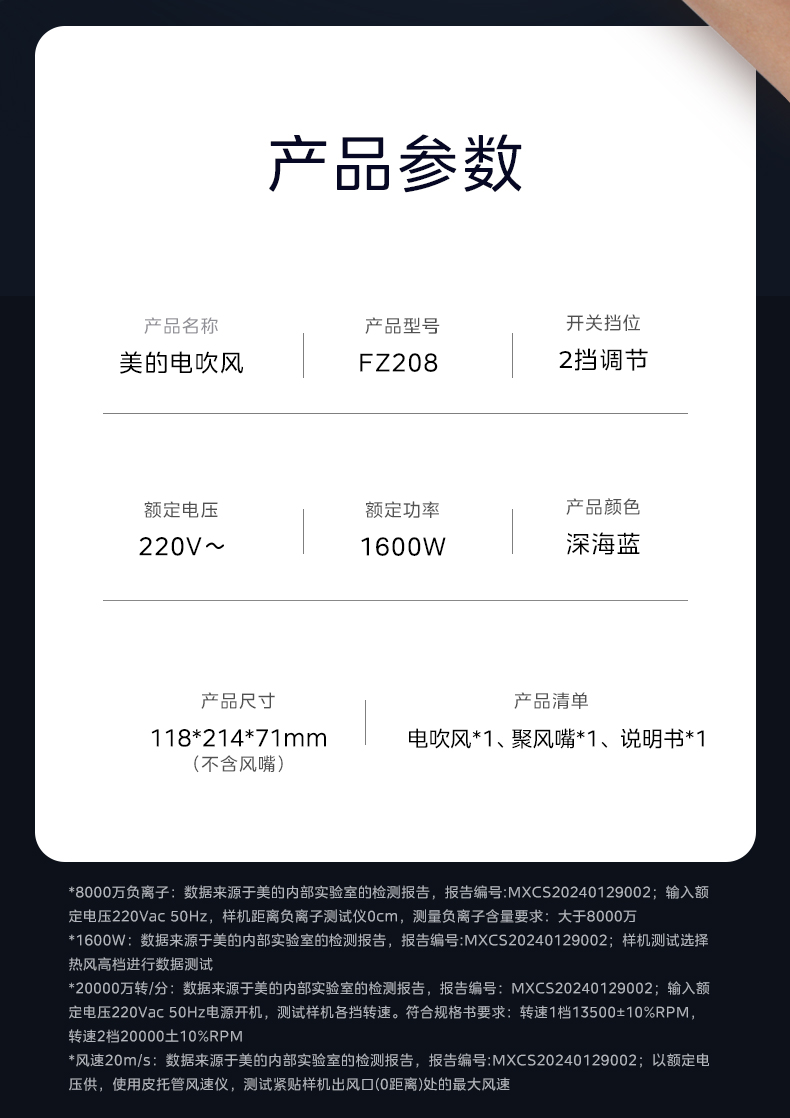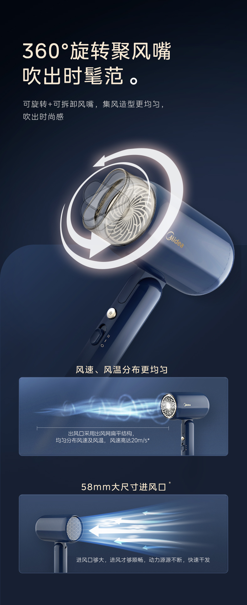 美的电吹风FZ208 折叠款-深海蓝(XS030100000079)
