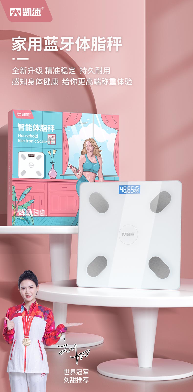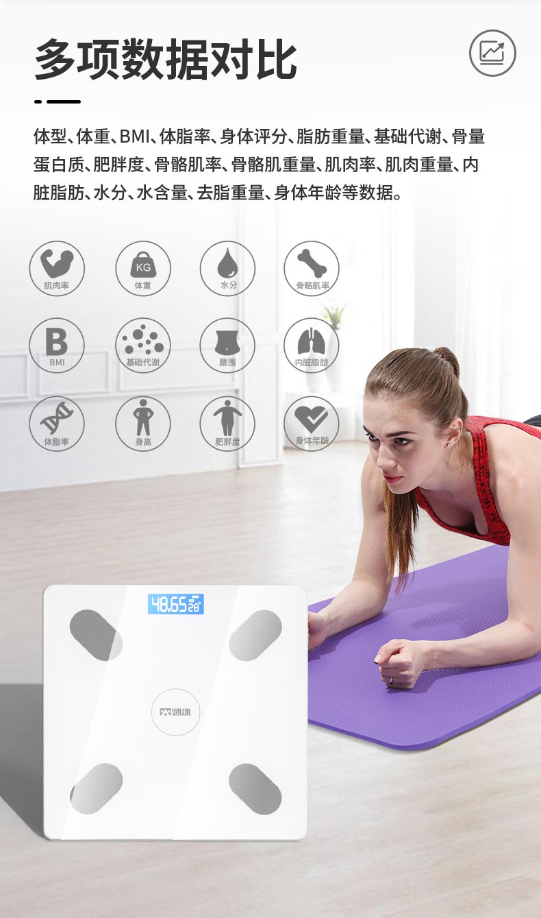 凯速KANSOON智能蓝牙体脂秤 皎月白 TZC002