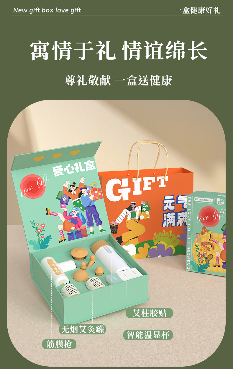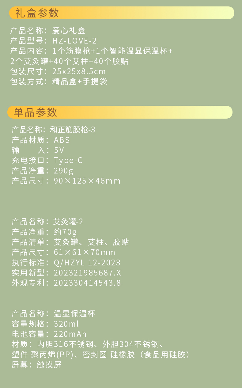 1个筋膜枪+1个智能温显保温杯+2个艾灸罐+40个艾柱+40个胶贴