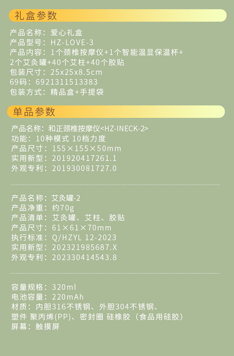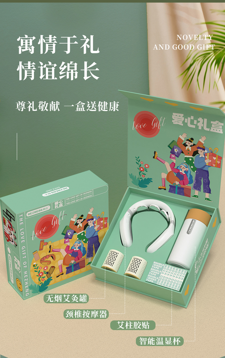1个颈椎按摩仪+1个智能温显保温杯+2个艾灸罐+40个艾柱+40个胶贴