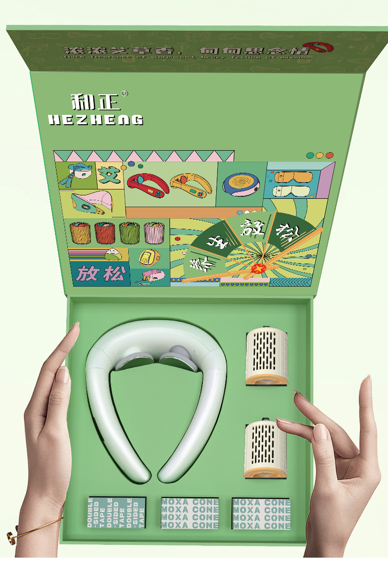 1个脉冲波颈椎按摩仪+2个艾灸罐+40个艾柱+40个胶贴