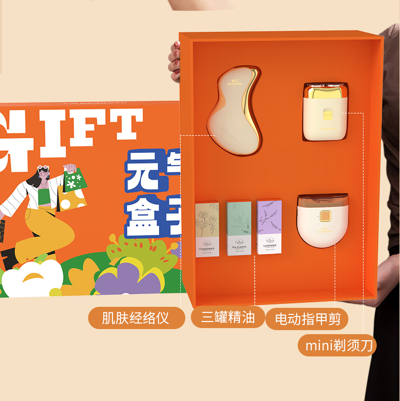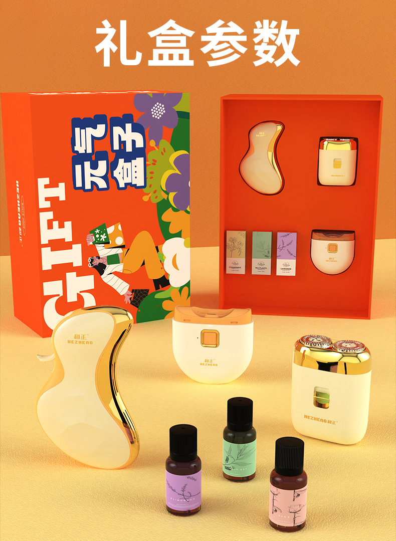 1个电动刮痧仪+一个电动指甲剪+一个电动剃须刀+精油三罐