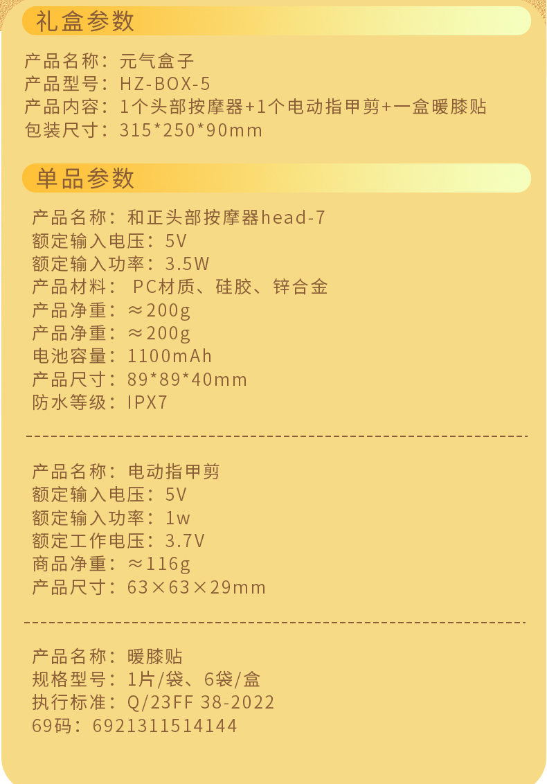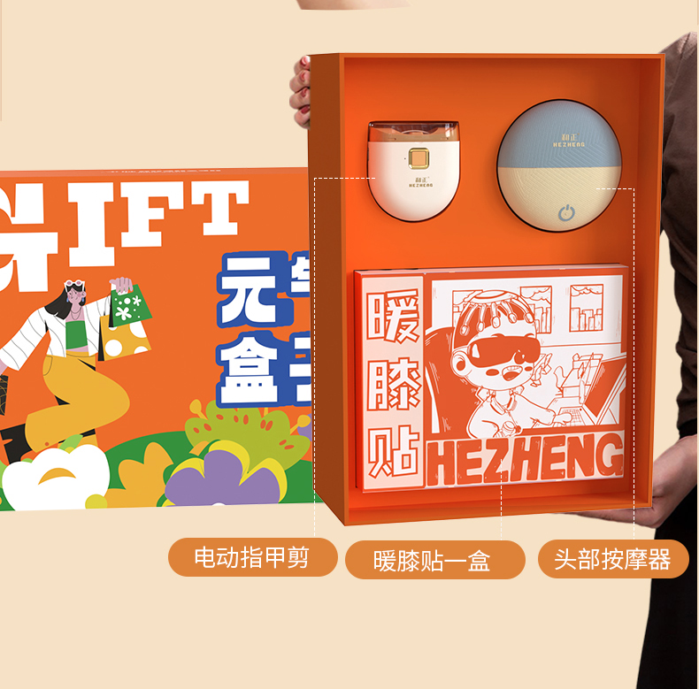 1个头部按摩器+1个电动指甲剪+一盒暖膝贴