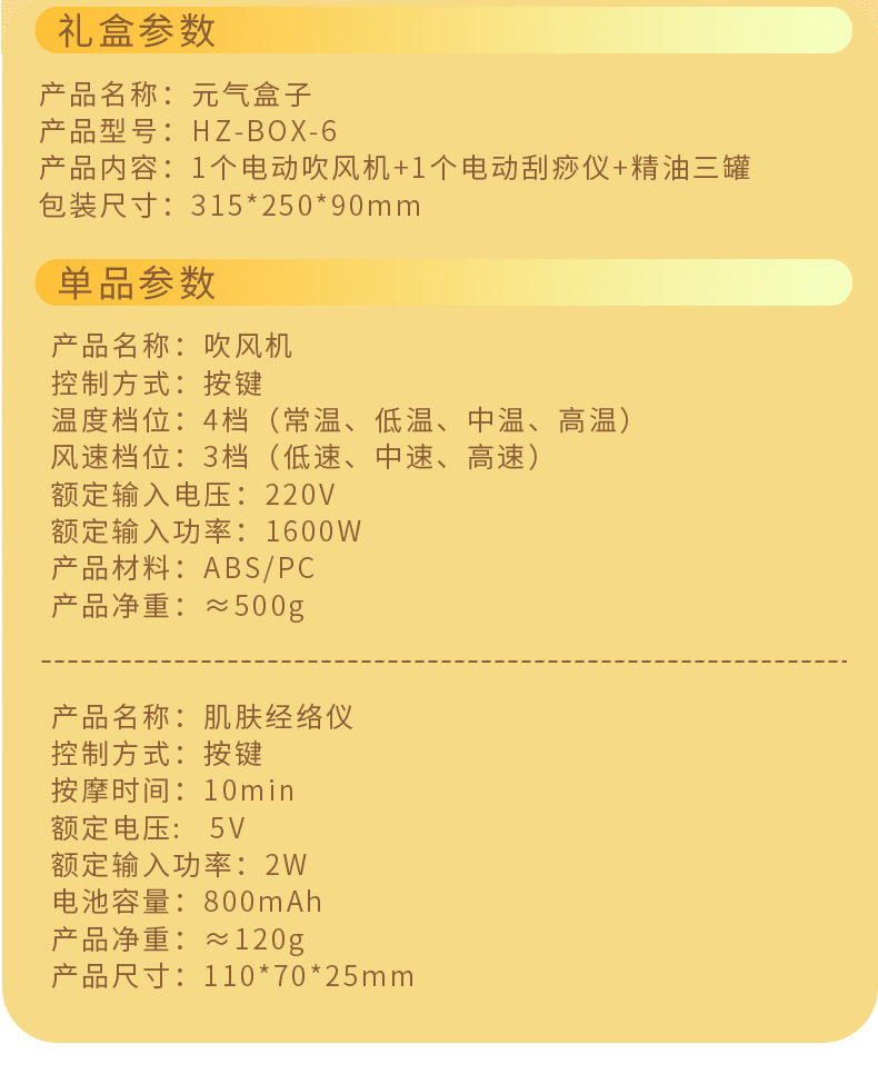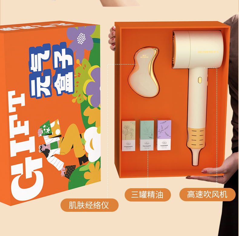 1个电动吹风机+1个电动刮痧仪+精油三罐