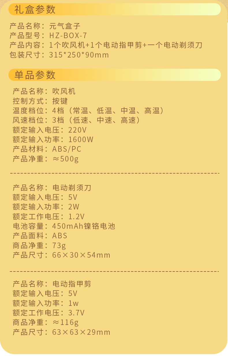 1个吹风机+1个电动指甲剪+一个电动剃须刀