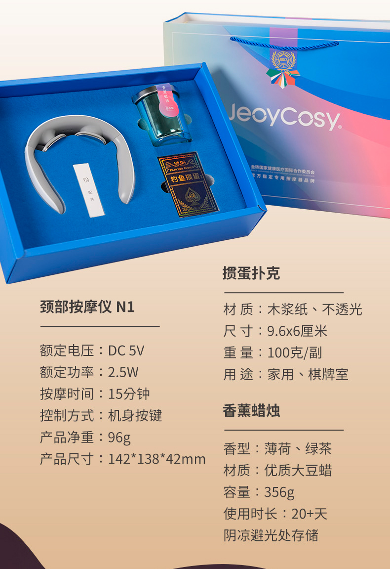 颈部按摩仪+掼蛋扑克+香薰蜡烛