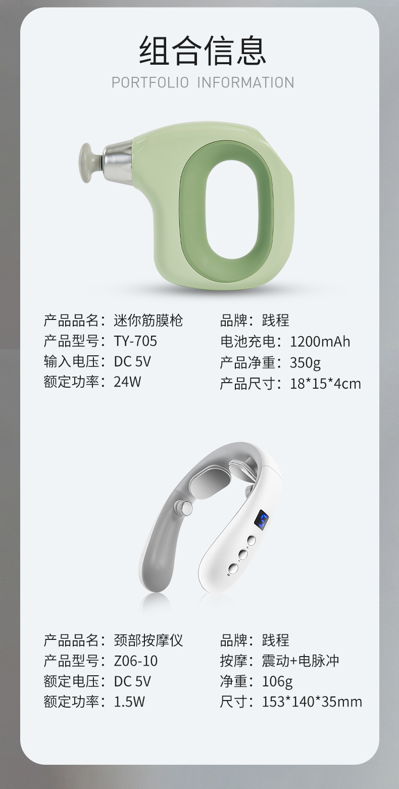 践程迷你筋模枪+颈部按摩仪蓝色组合 997