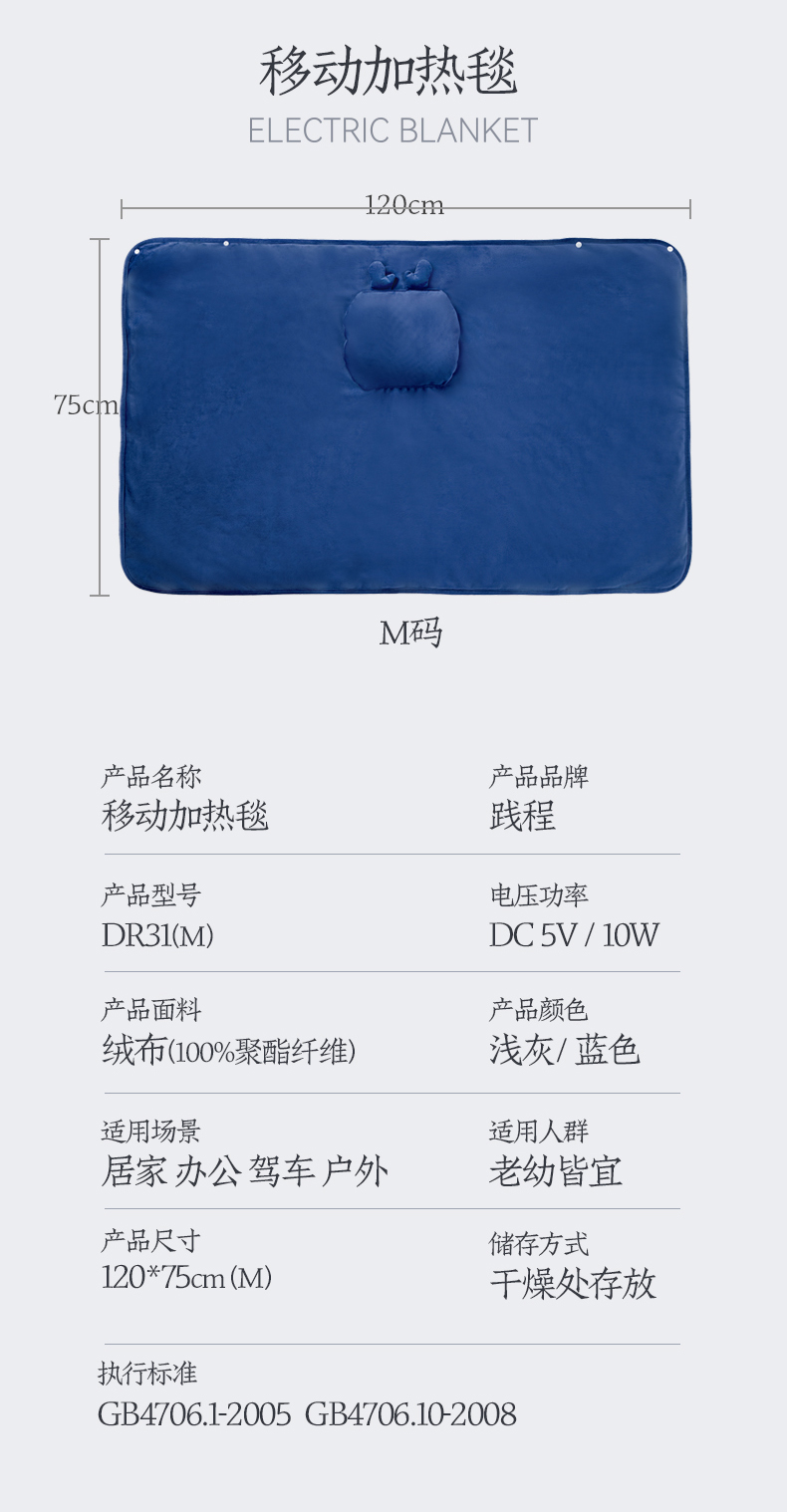 践程移动加热毯 DR31 3.8女神节健康好礼 送妈妈送老婆送女友