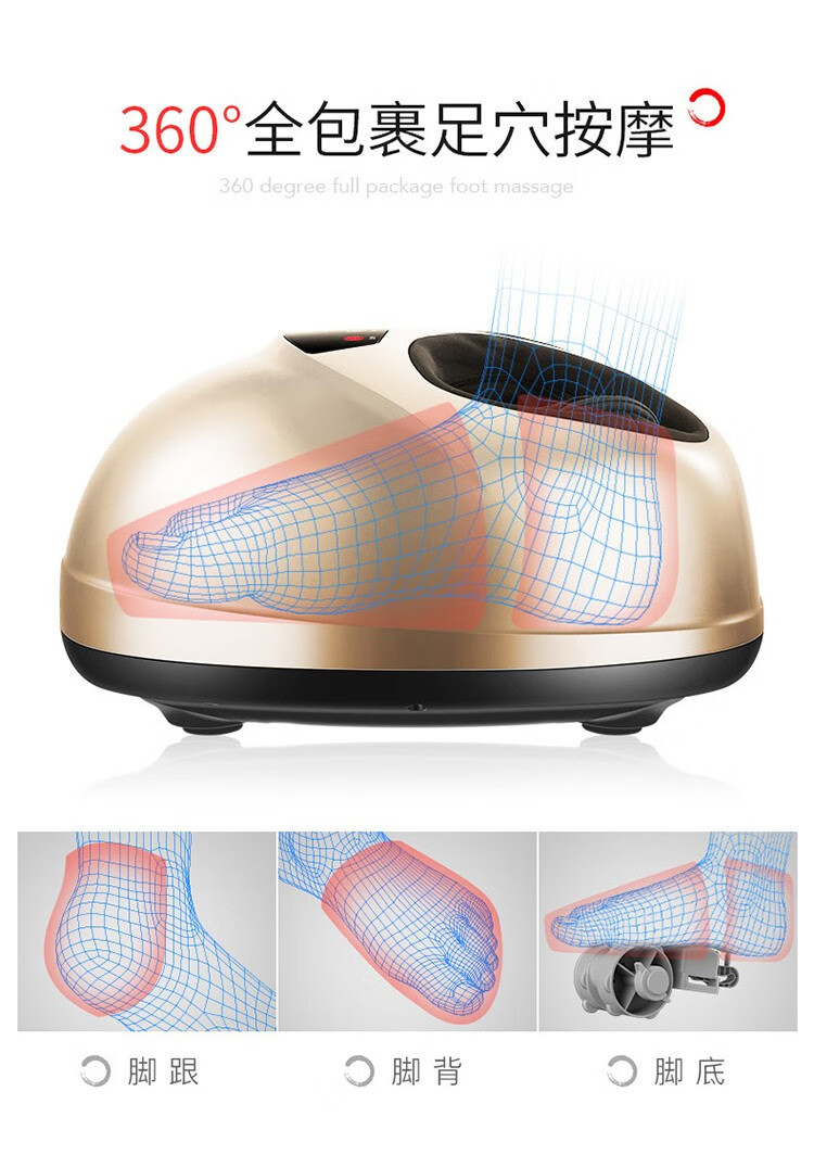 滚揉、刮痧、揉顶、气压、温热功能集于一体包裹整个脚部