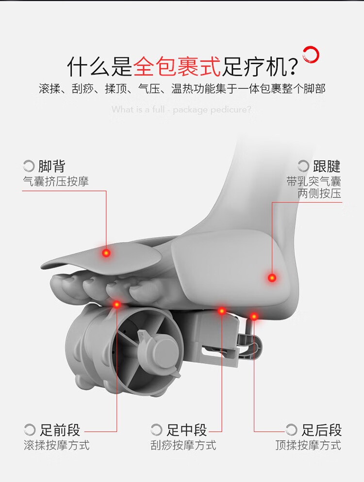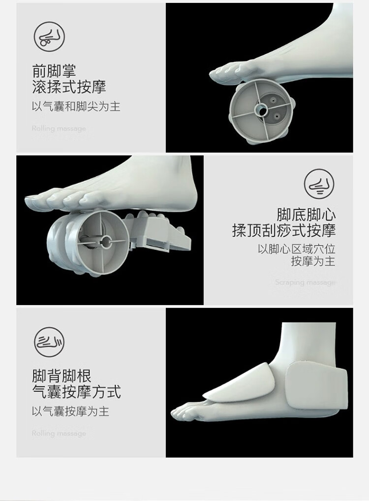 包裹式按摩/脚背气囊夹揉, 集五大按摩手法技艺高超,