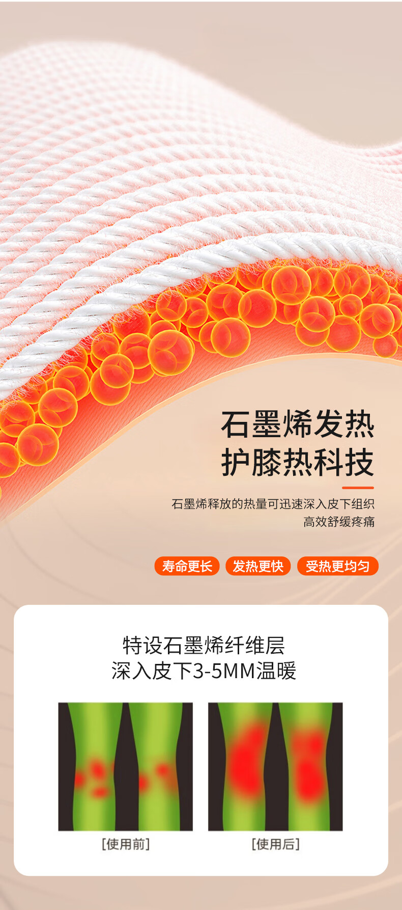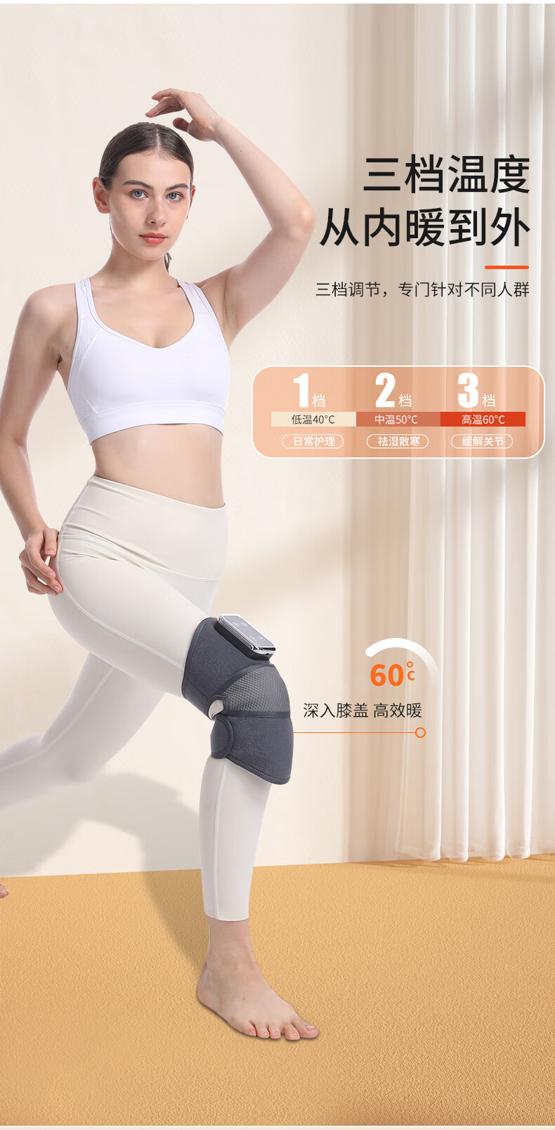 ⑤驱寒活血:热敷功能可以帮助驱散膝盖内的寒气,减轻因寒冷引起的疼痛、麻木、抽筋等症状。