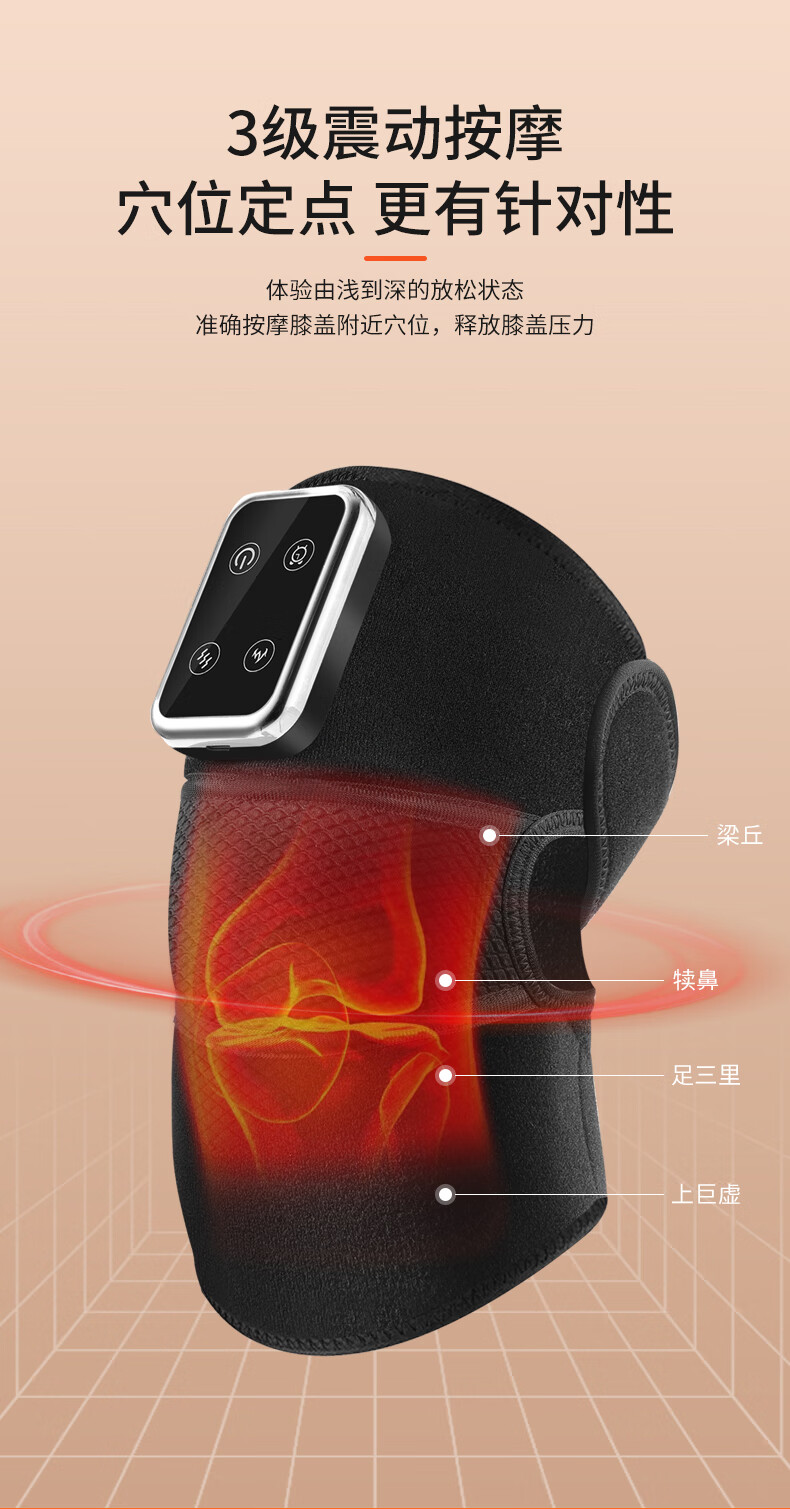 膝盖按摩仪主要通过震动、气囊挤压和热敷等方式,对膝盖进行按摩和热敷,以缓解膝盖的不适和疼痛。以下是膝盖按摩仪的一些主要好处: