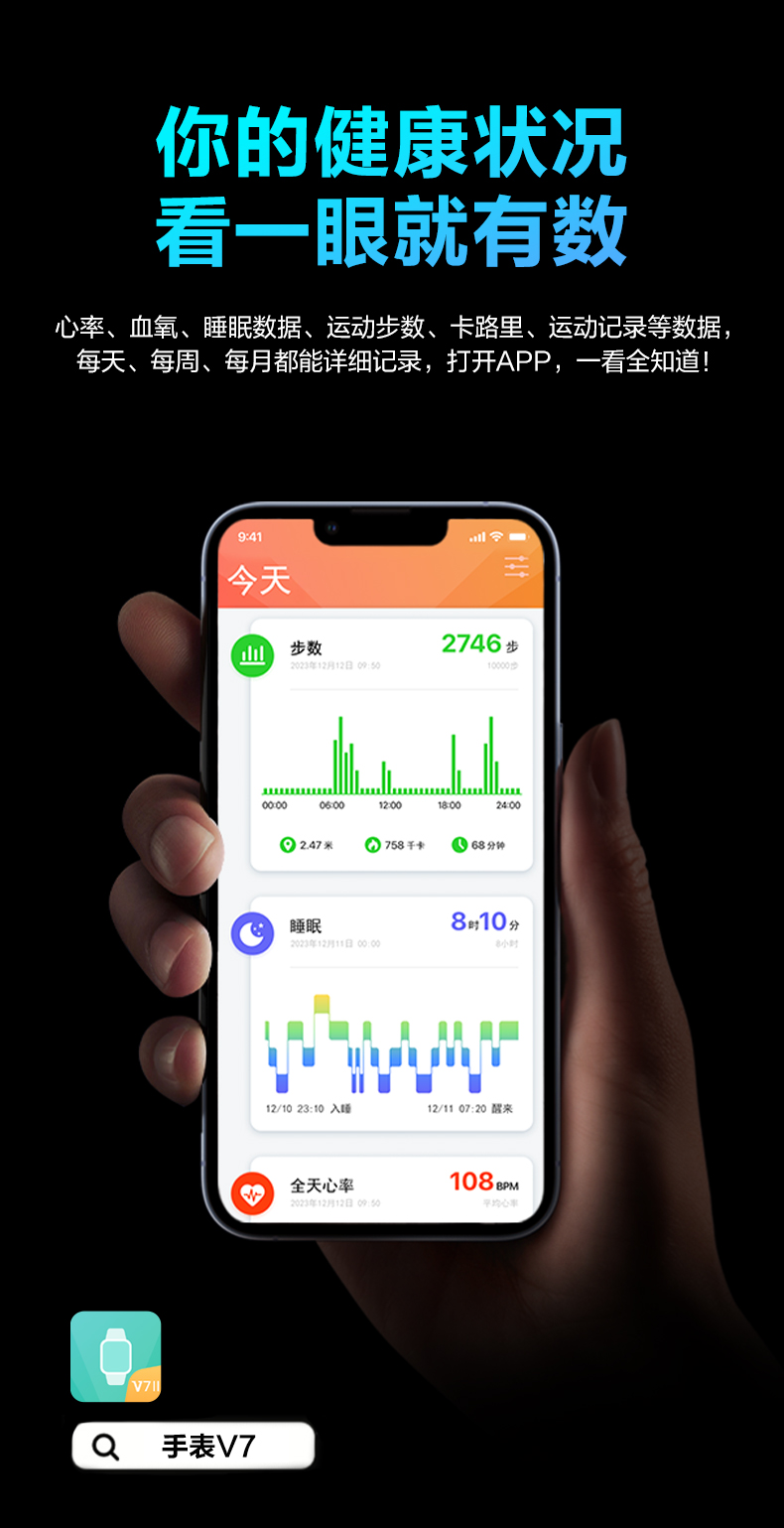 SKG蓝牙健康手表V7二代