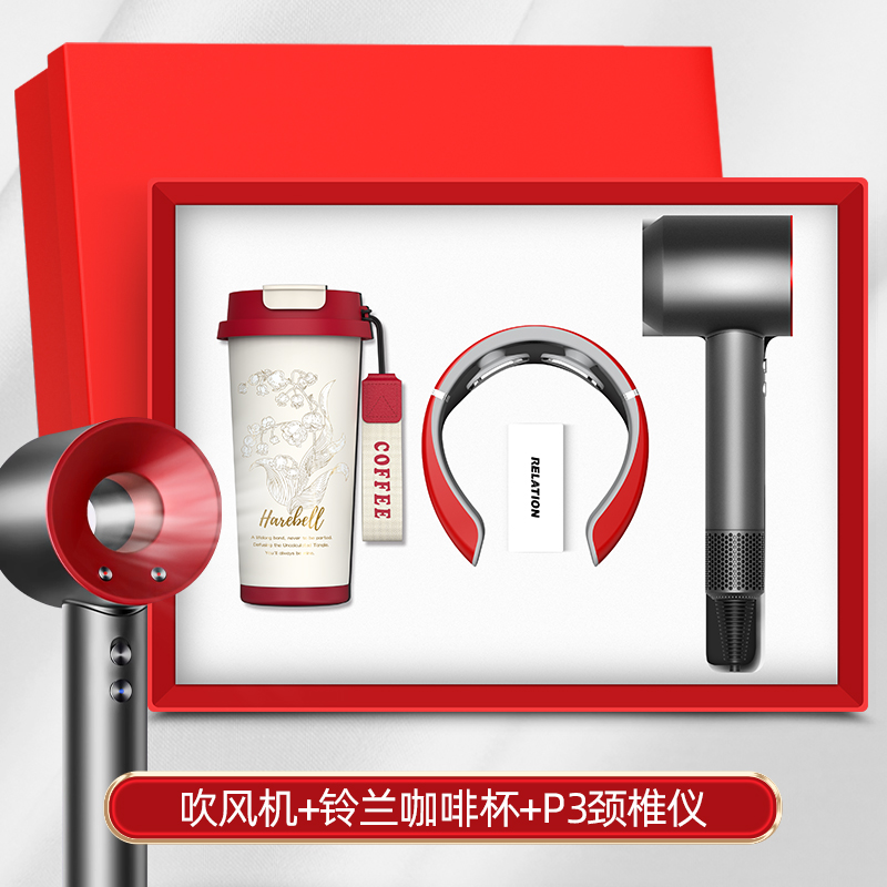 MH-01吹风机铃兰咖啡杯P3颈椎仪三件套红色配6D红盒WRY3933