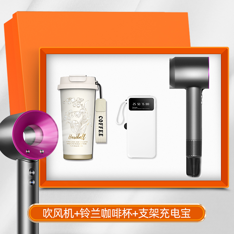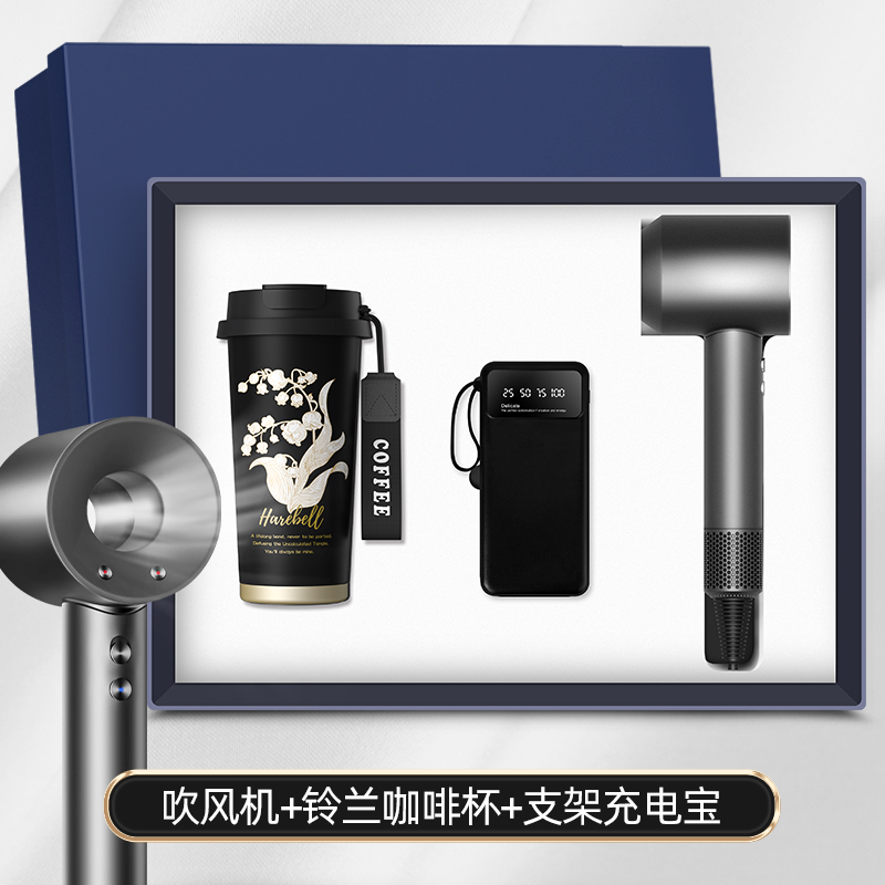 MH-01吹风机铃兰咖啡杯支架充电宝三件套黑色配6D蓝盒WRY3813