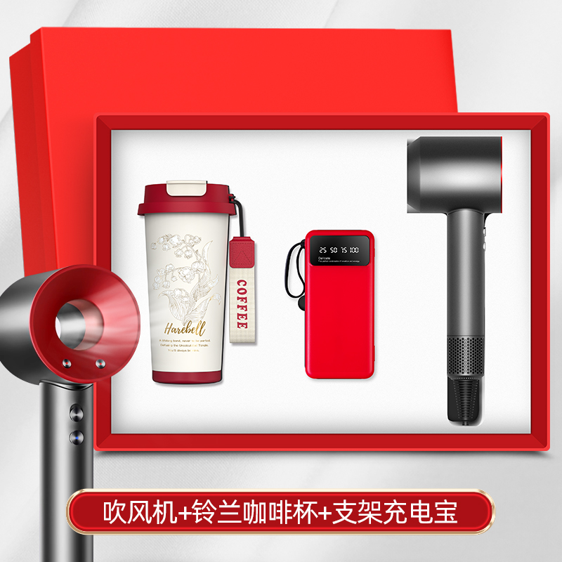 MH-01吹风机铃兰咖啡杯支架充电宝三件套红色配6D红盒WRY3833