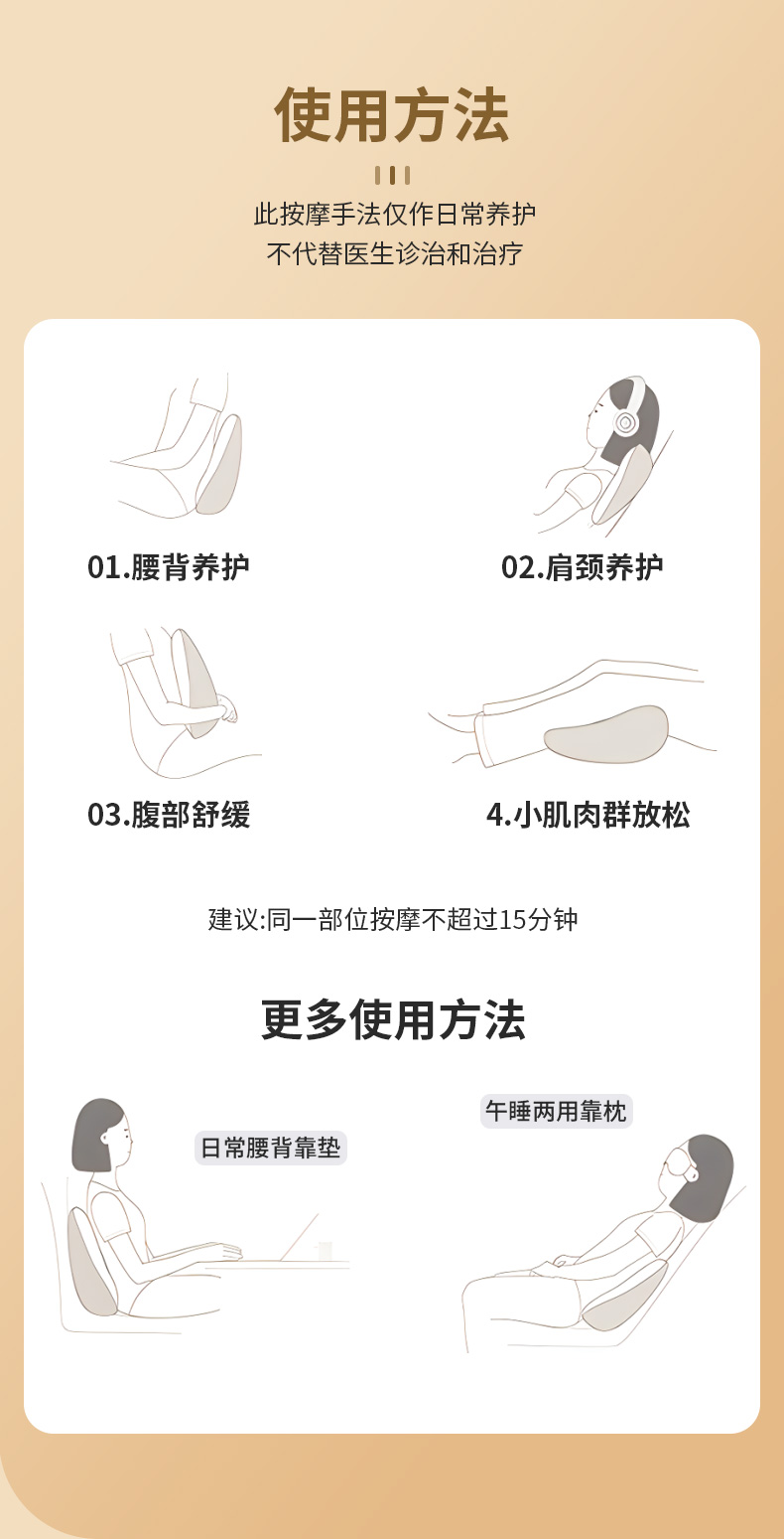 5,多功能多场景使用,揉腹捏肩护腰,实用方便;