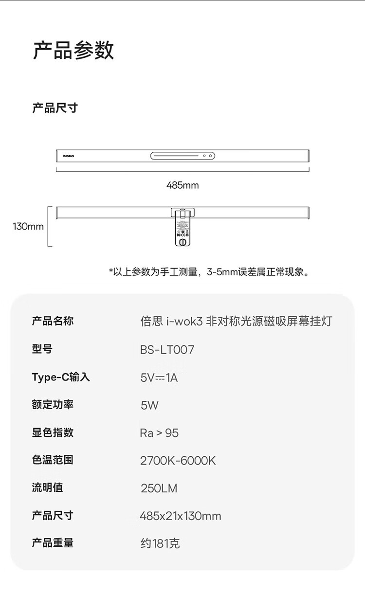 倍思i-wok3非对称光源磁吸屏幕挂灯星曜黑 L10068500111-00