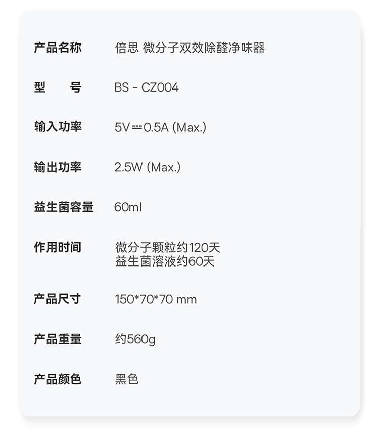 倍思微分子双效除醛净味器黑色 CRCQ010001