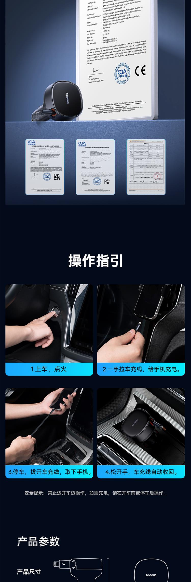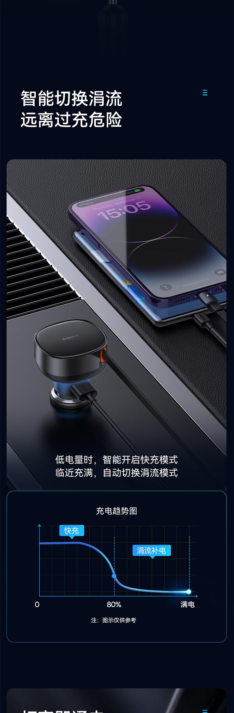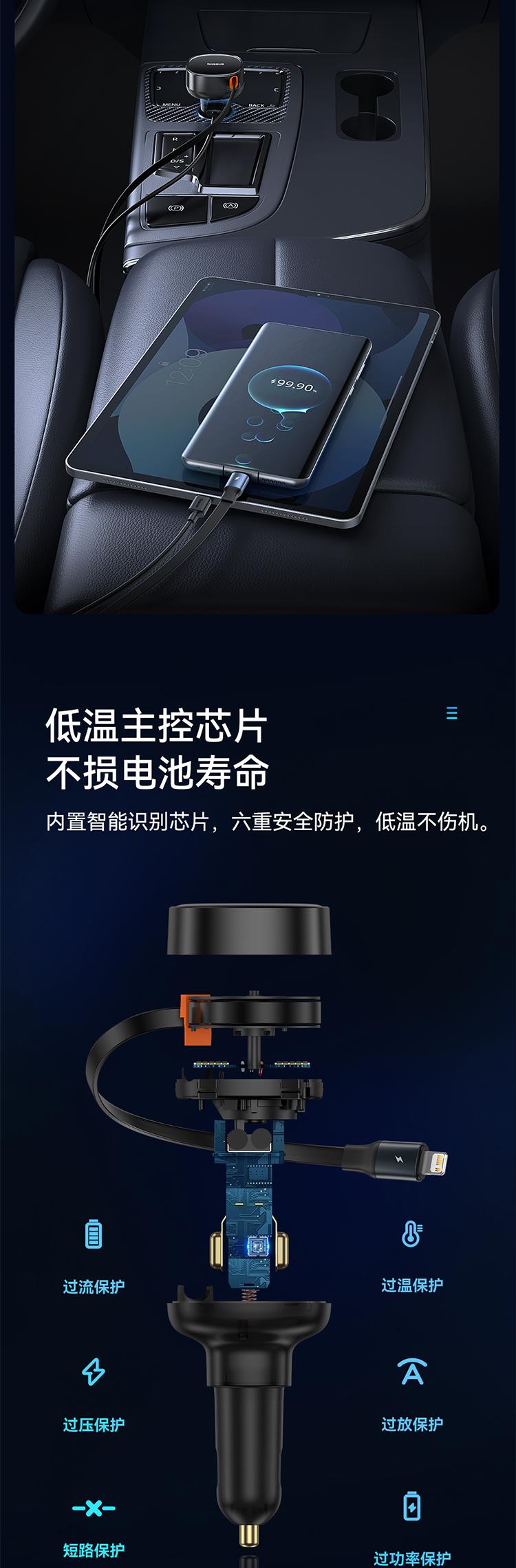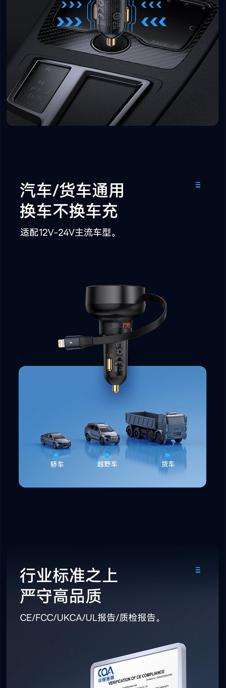 倍思途享Pro车载充电器星曜黑规格:U+iP伸缩线55W C00057801111-00