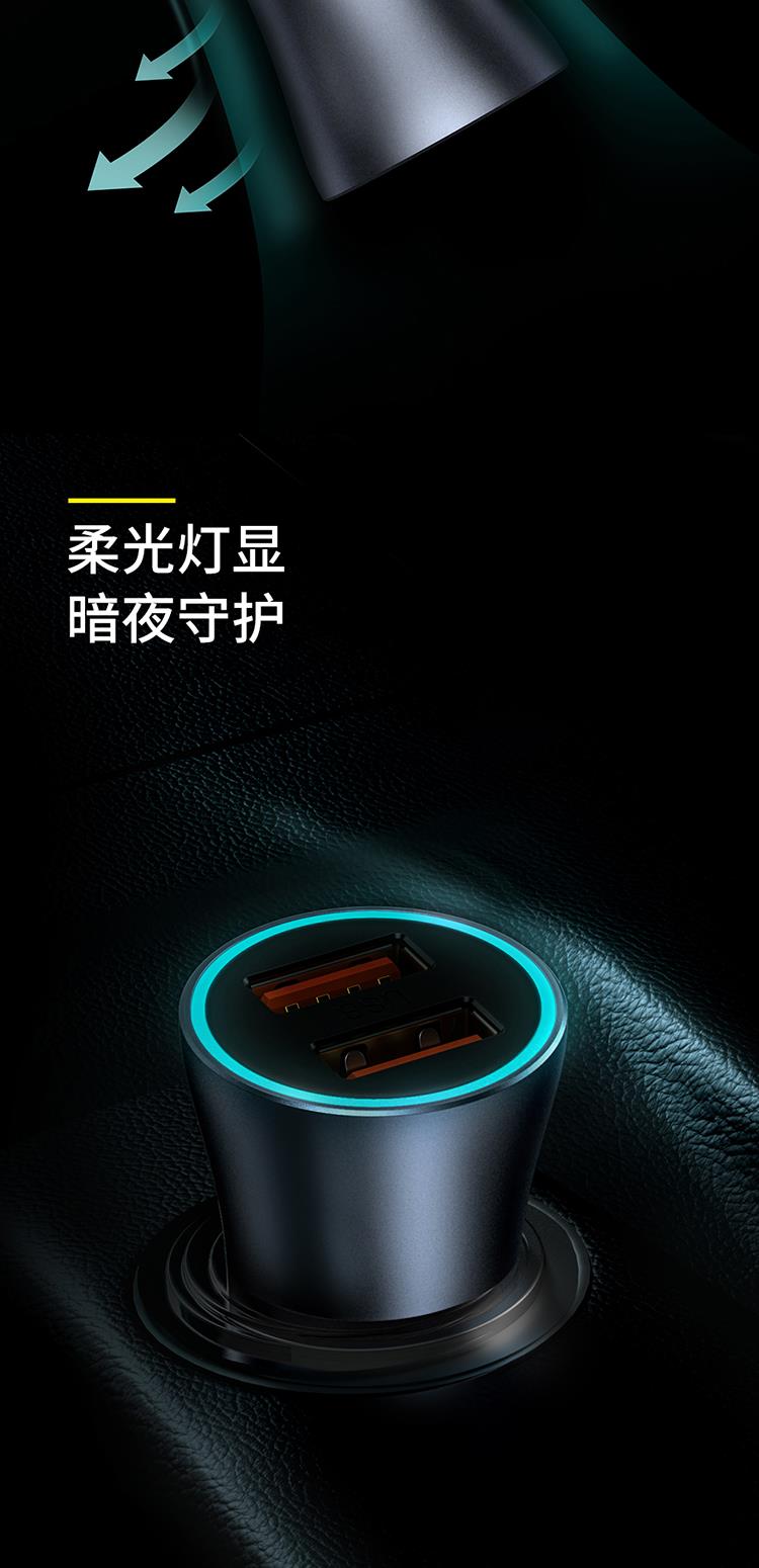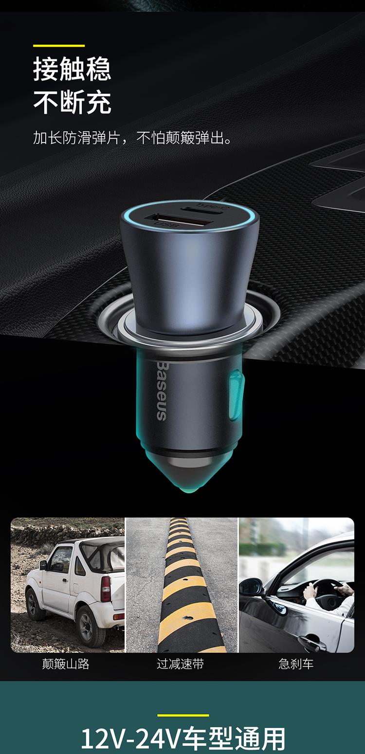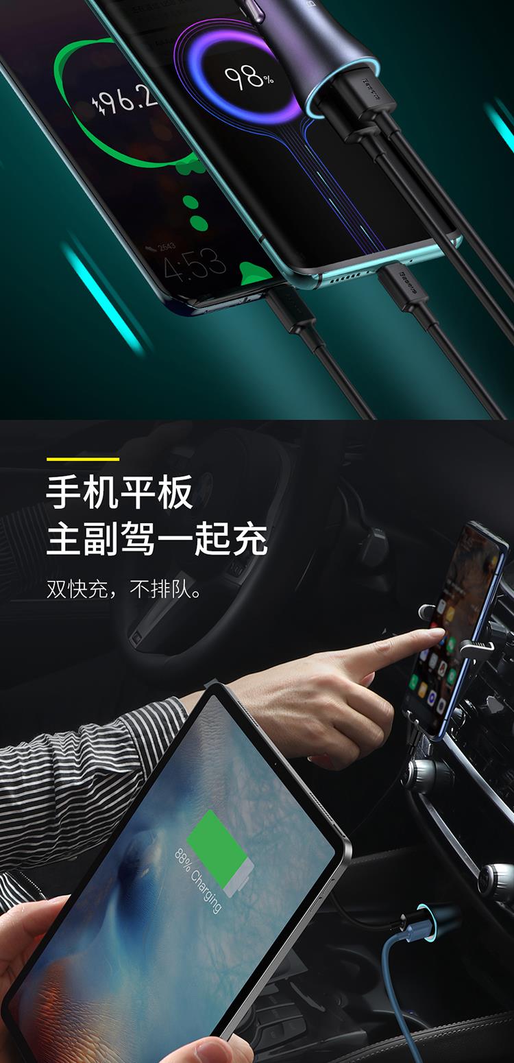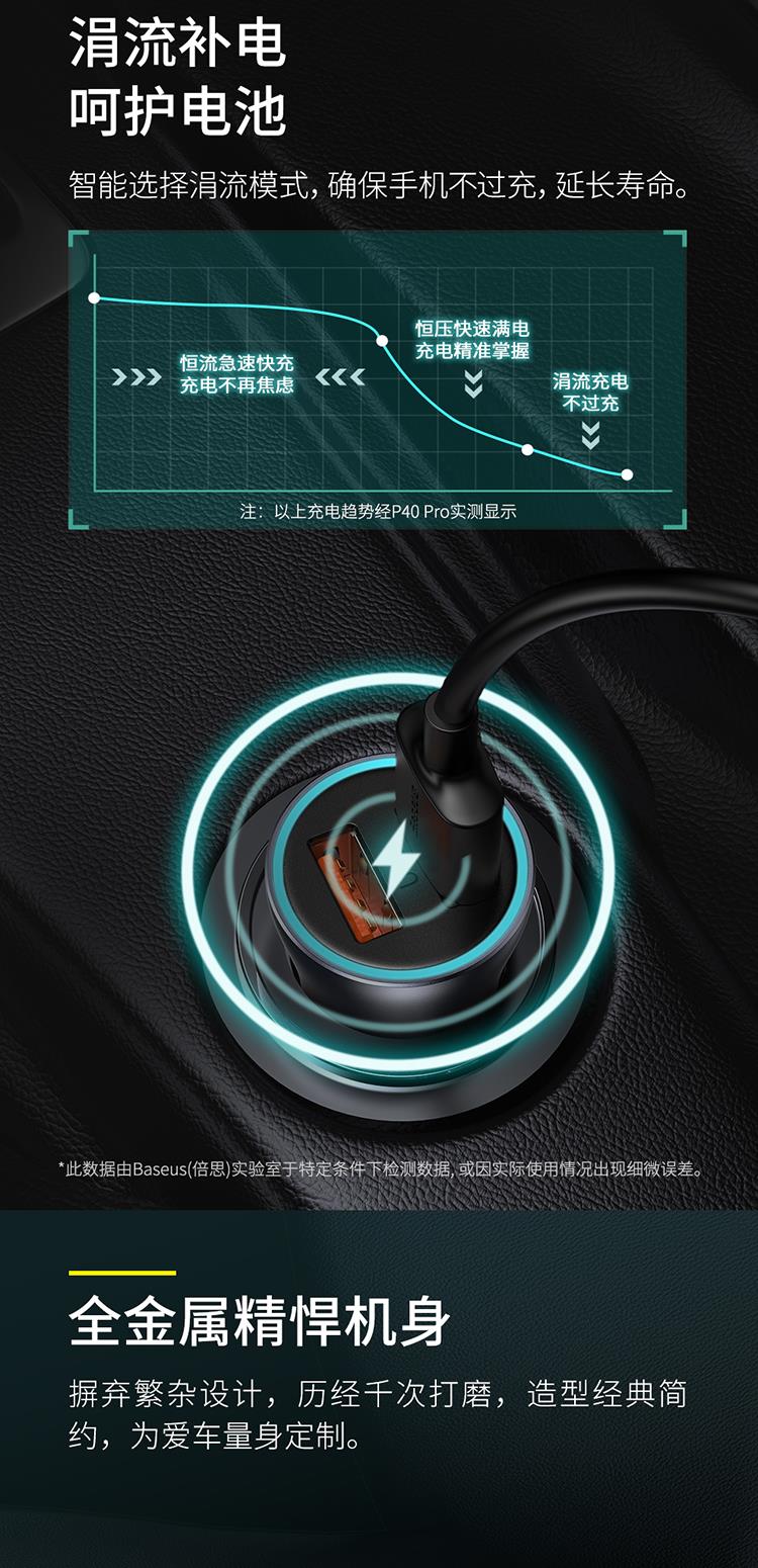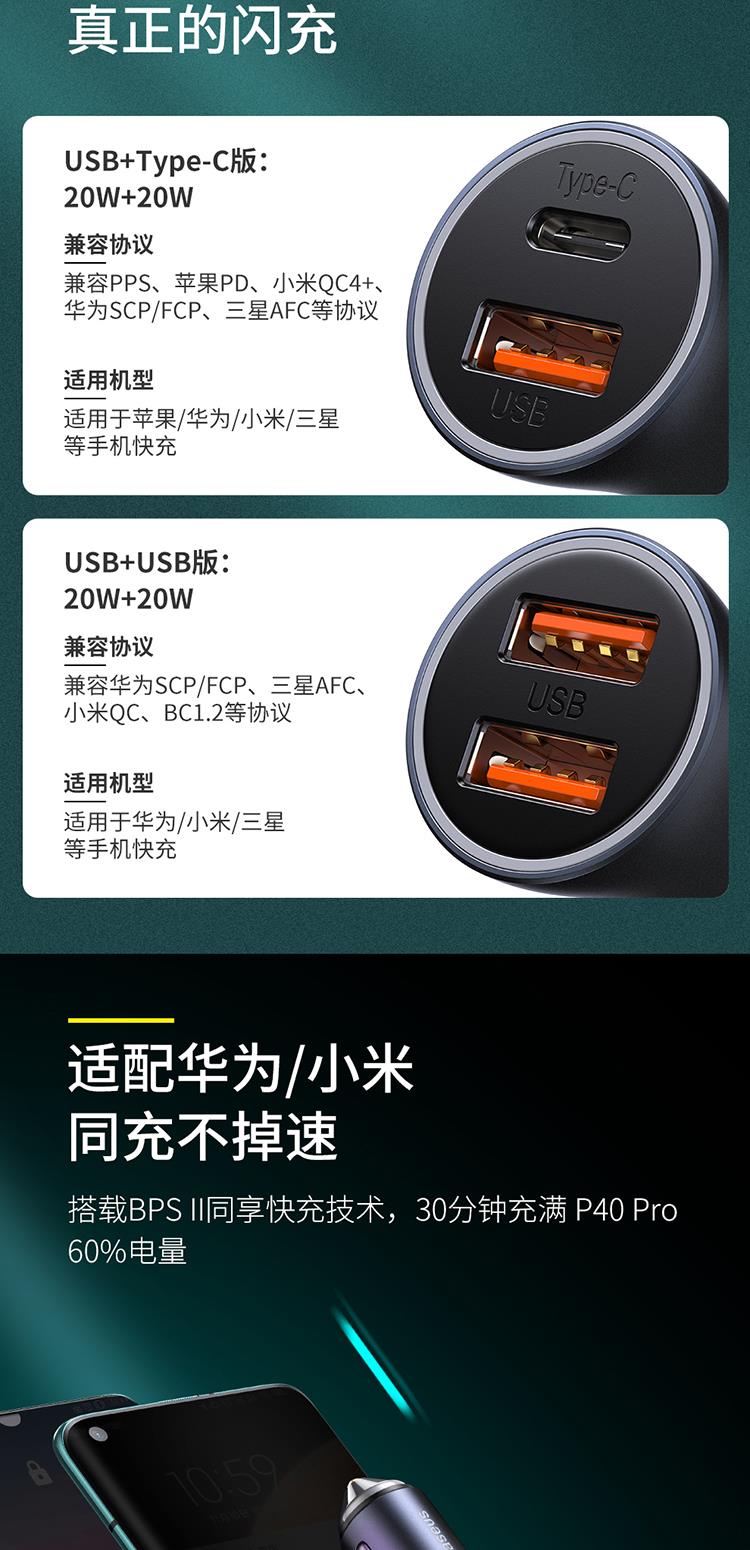 倍思金点子Pro双快充车载充电器40W规格:U+U套装深灰色(含:简易通用数据线USBFORTYPE-C5A1M黑色)