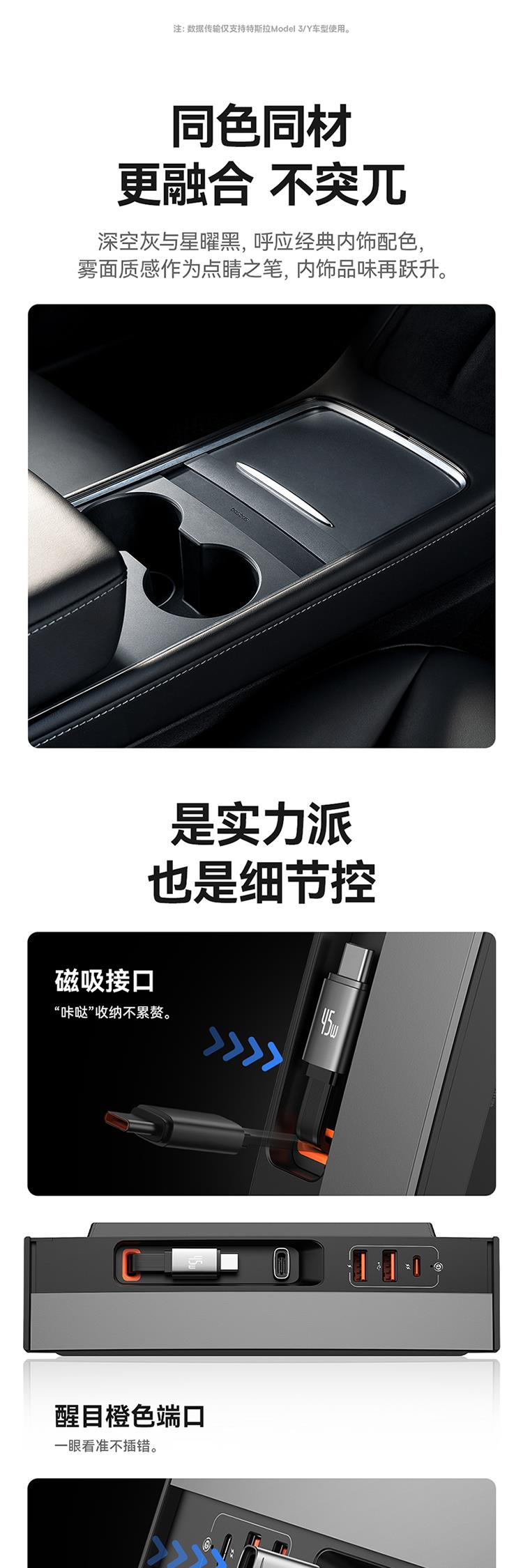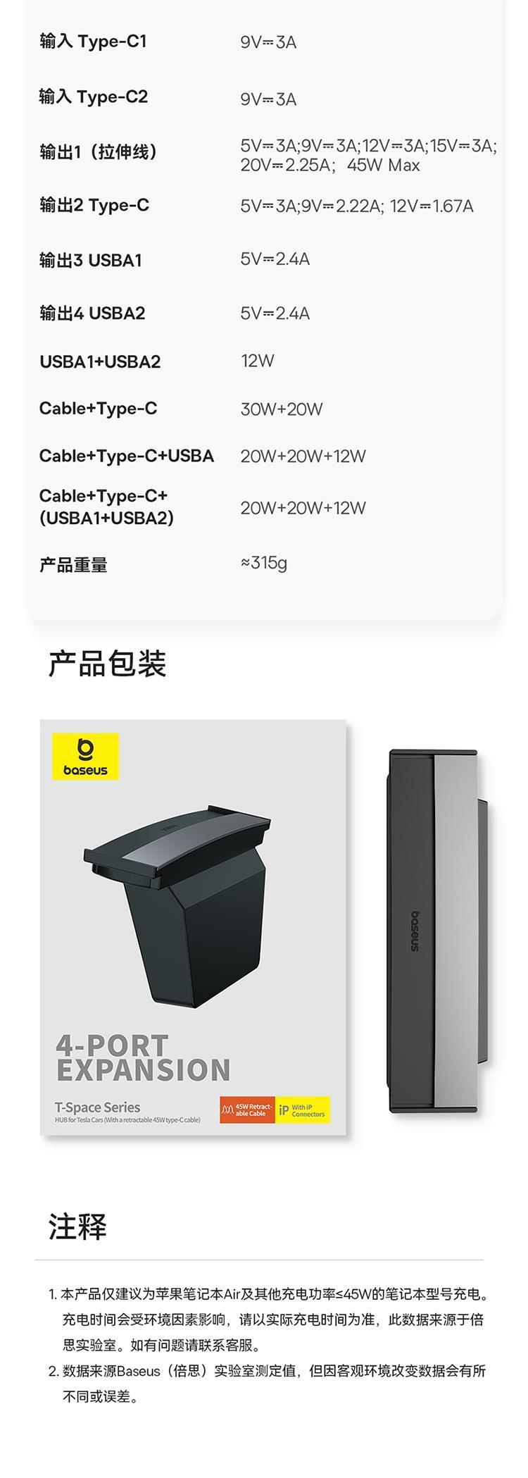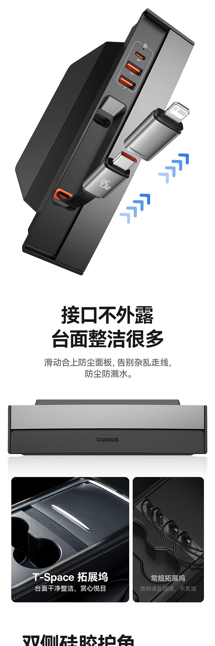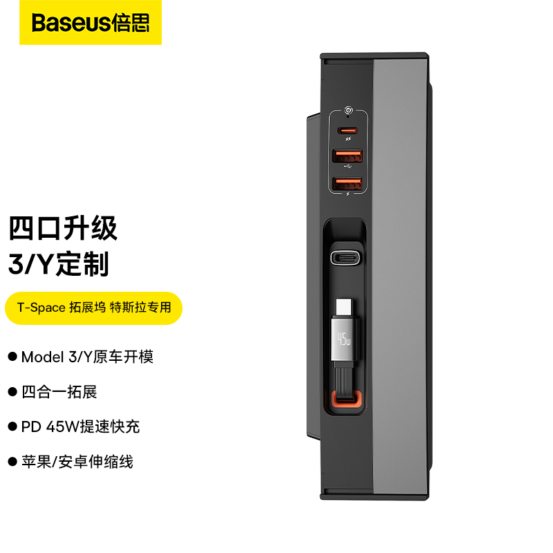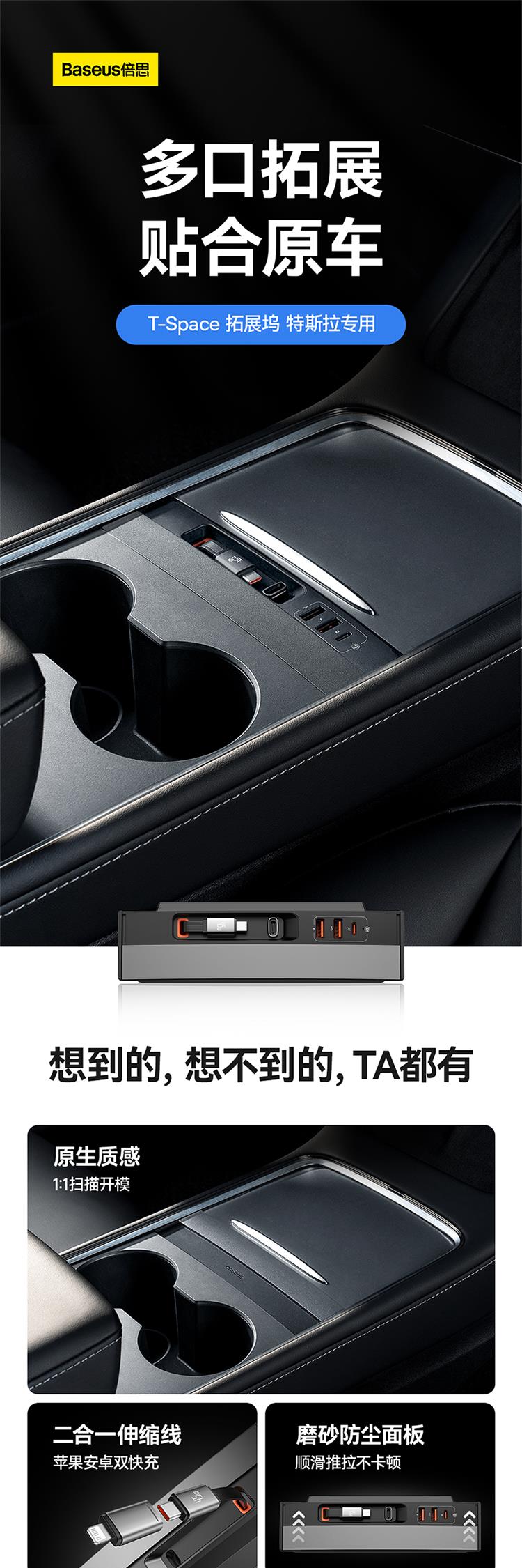 倍思T-Space拓展坞特斯拉专用(2A+1C+伸缩线45W)颜色:星曜黑 B00051300111-00