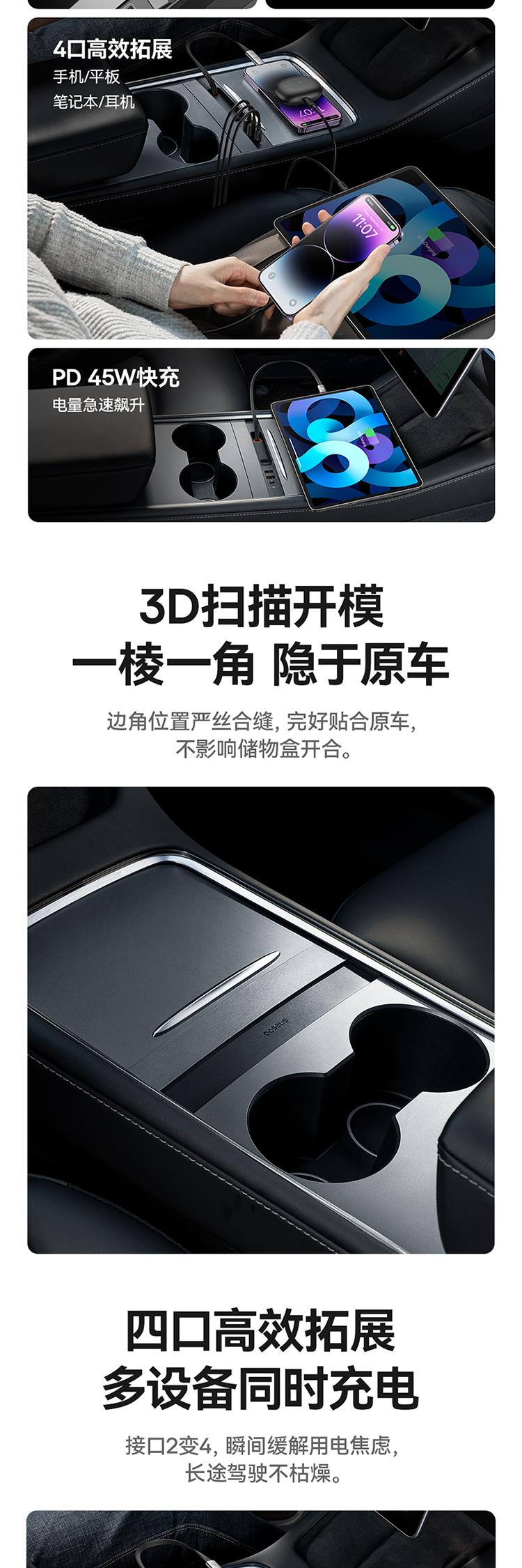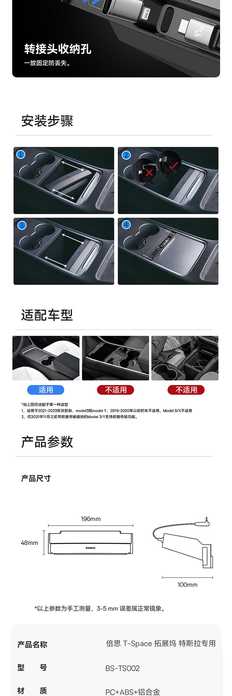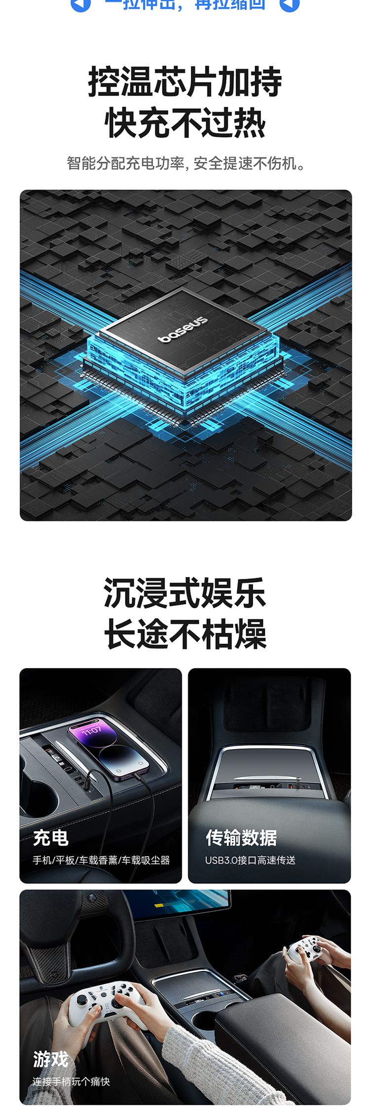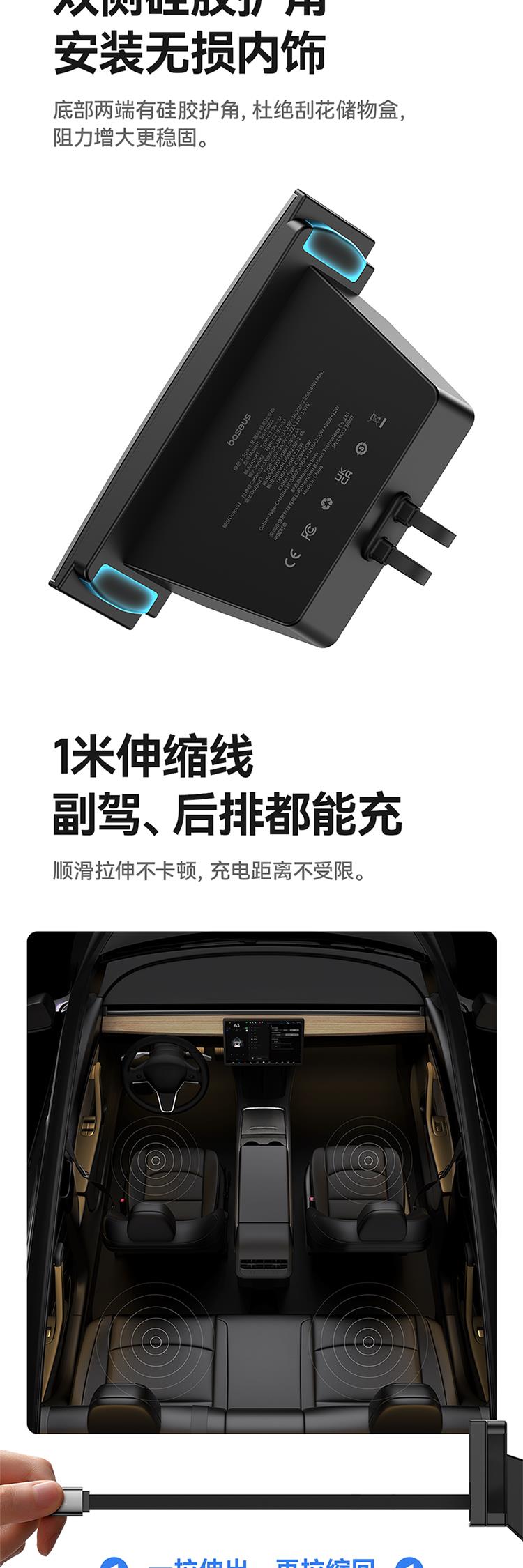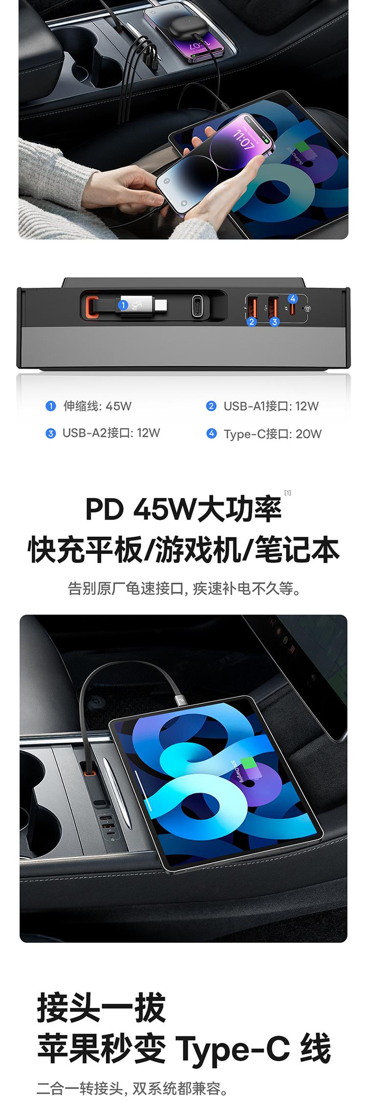 倍思T-Space拓展坞特斯拉专用(2A+1C+伸缩线45W)颜色:星曜黑 B00051300111-00