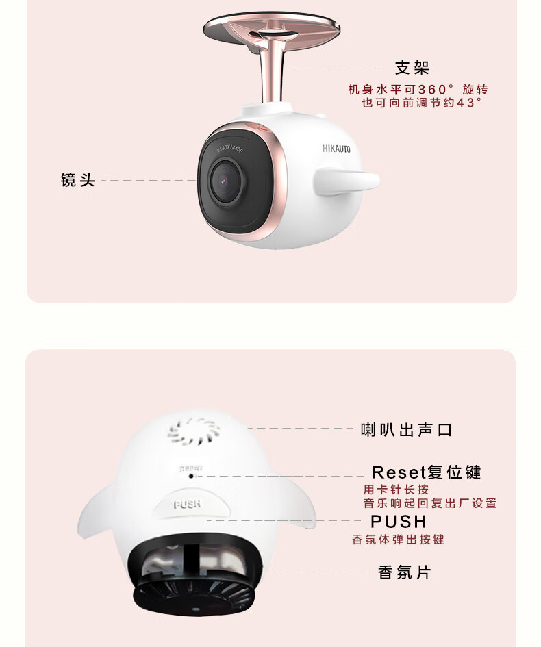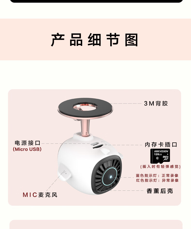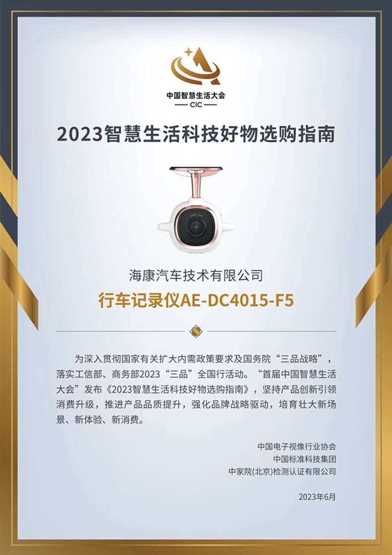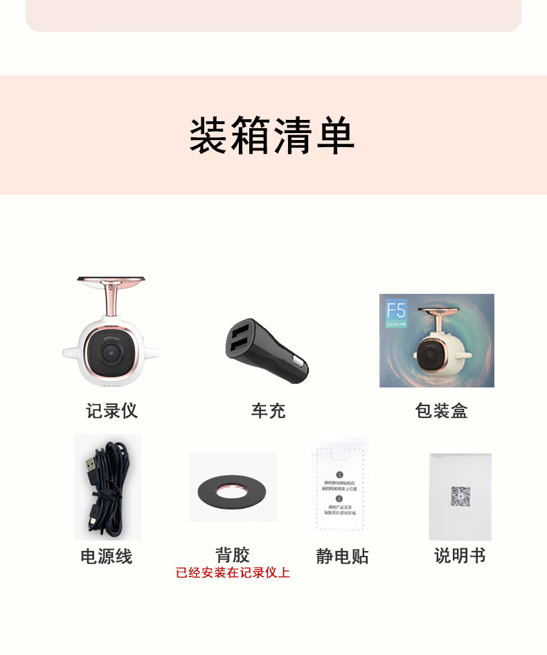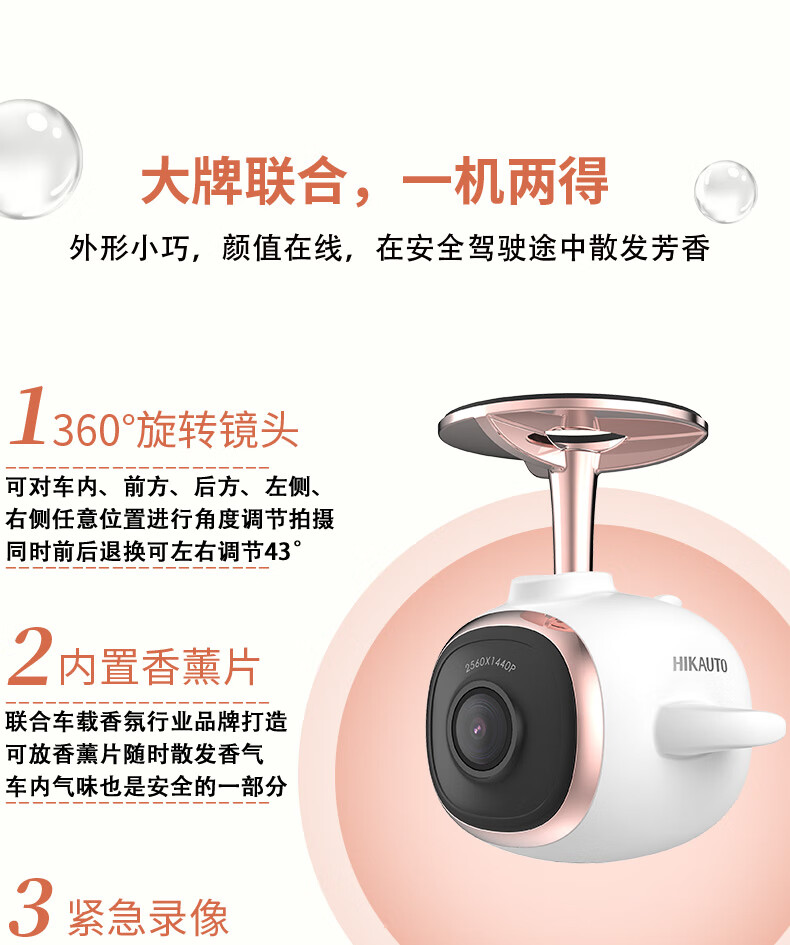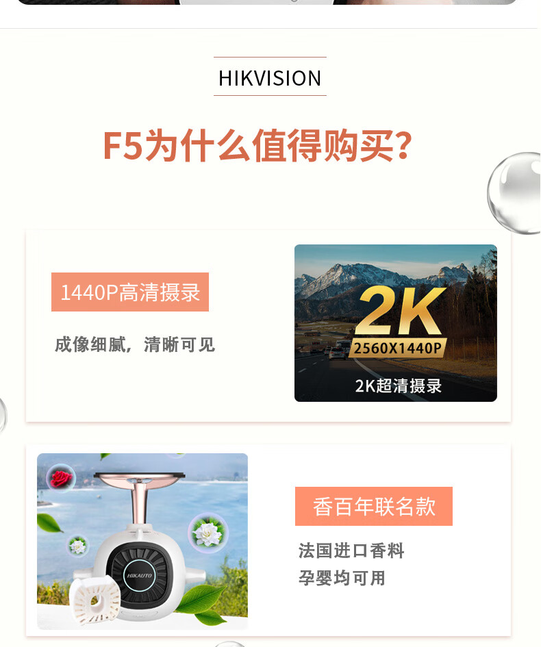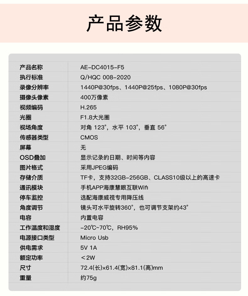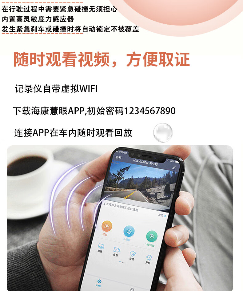• 海康汽车电子 行车记录仪F5  1440P、2k, F1.6无光夜视 105°黄金广角 30FPS WIFI手机互联
