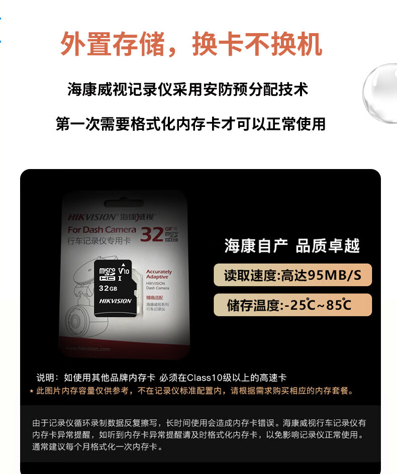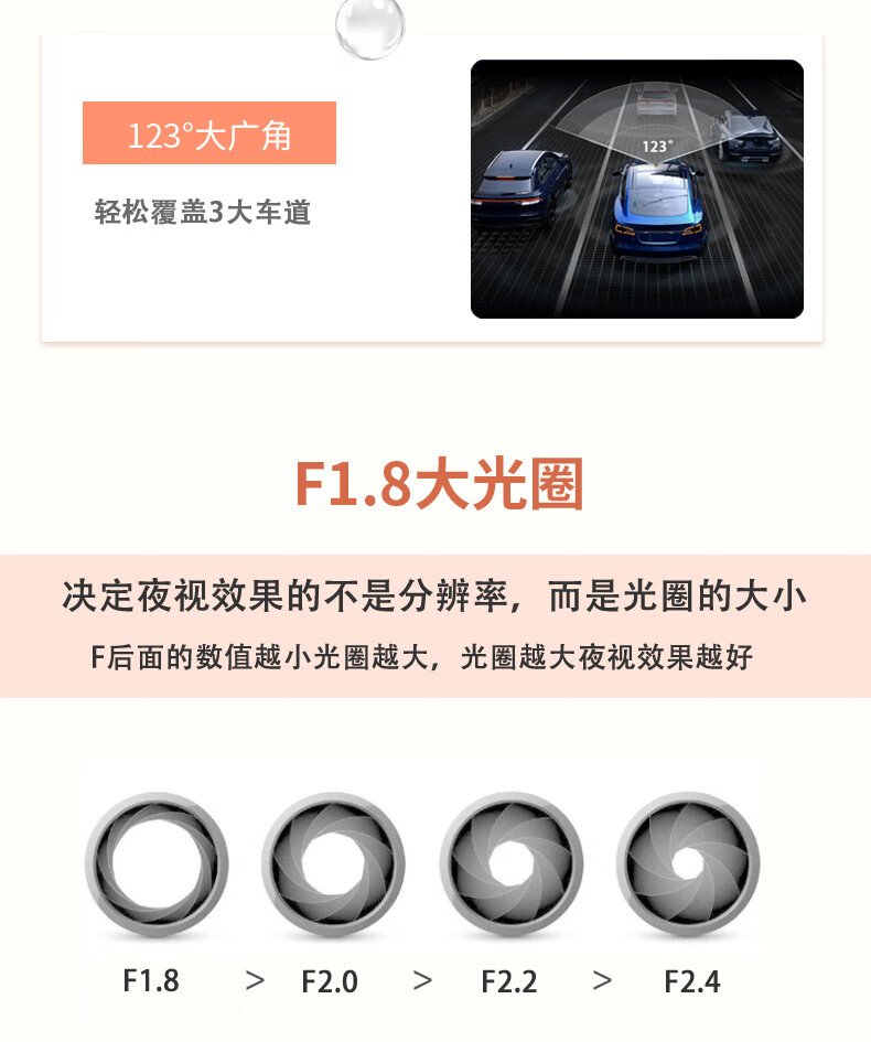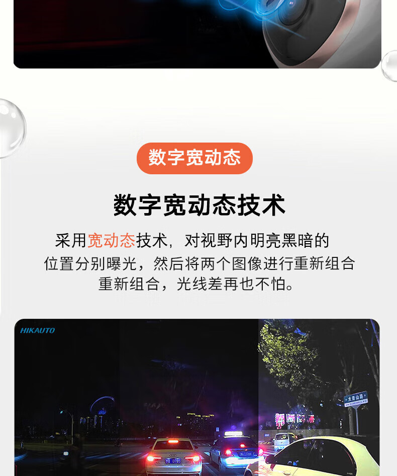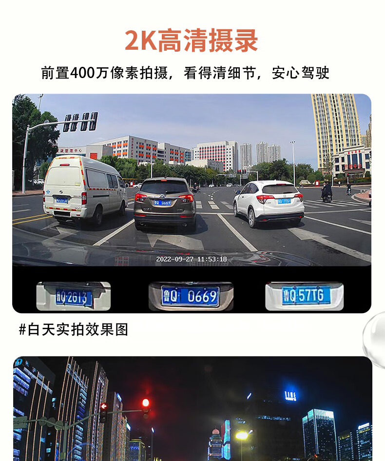 海康汽车电子 行车记录仪F5 1440P、2k, F1.6无光夜视 105°黄金广角 30FPS WIFI手机互联