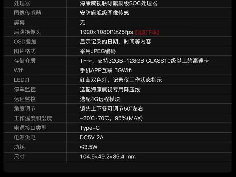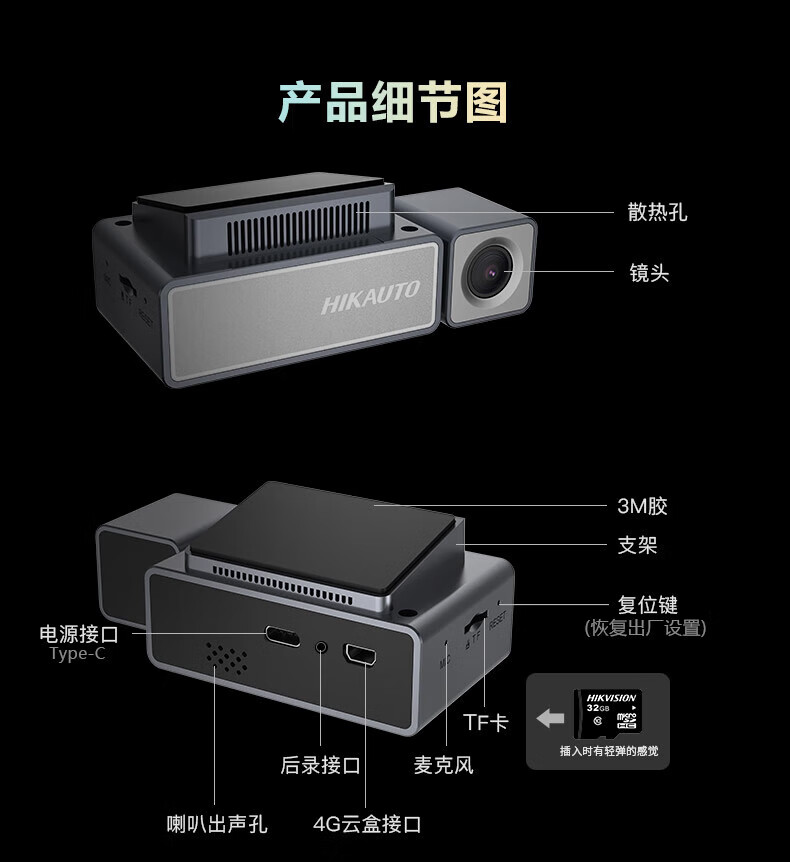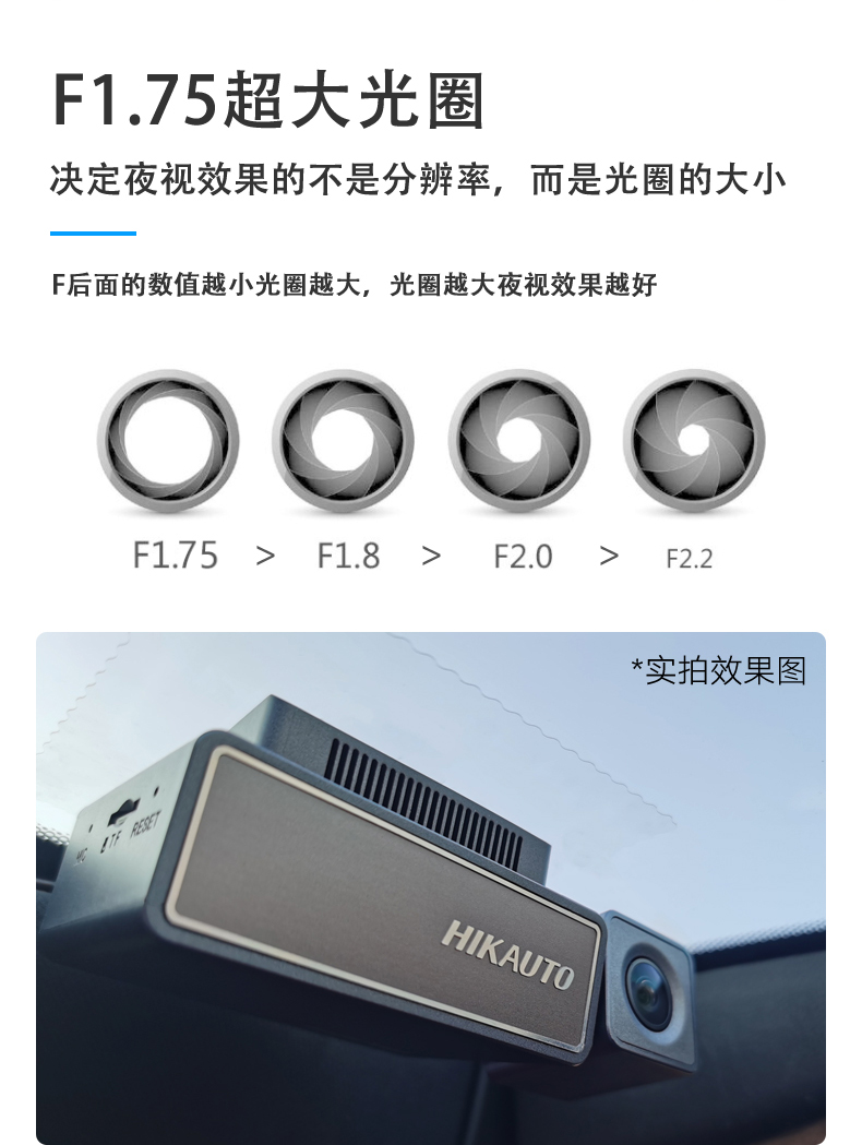 海康汽车电子行车记录仪C8 2160P、F1.75光圈 语音声控