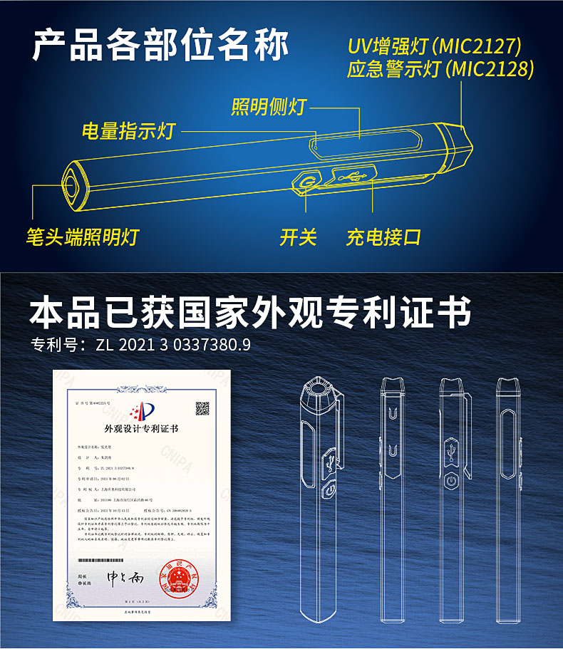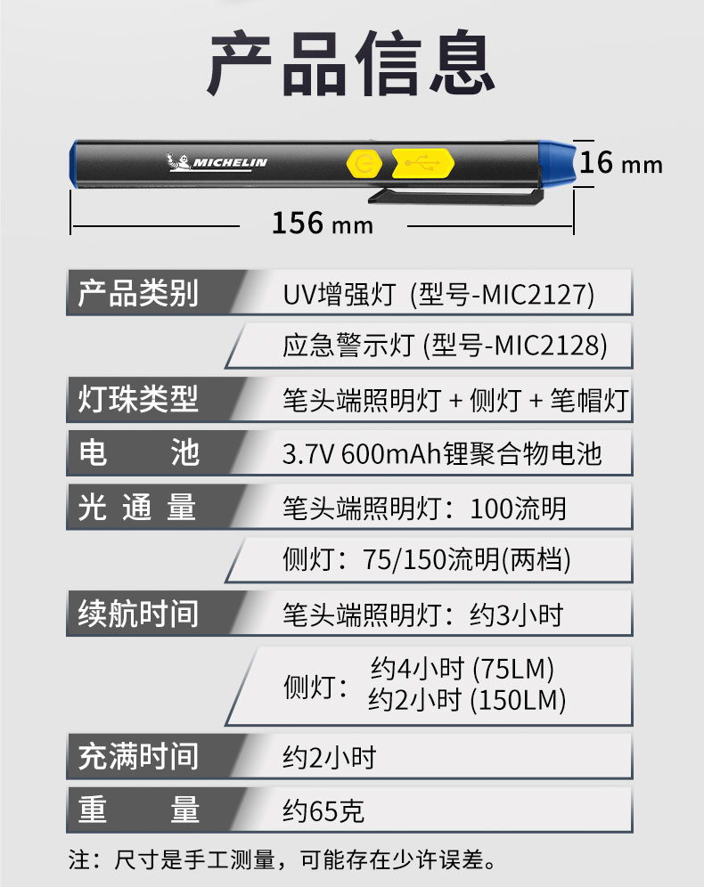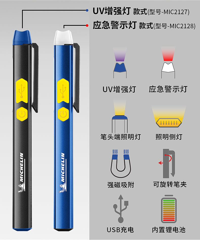 米其林笔形锂电池工作灯红灯警示版(专业级)MIC2128