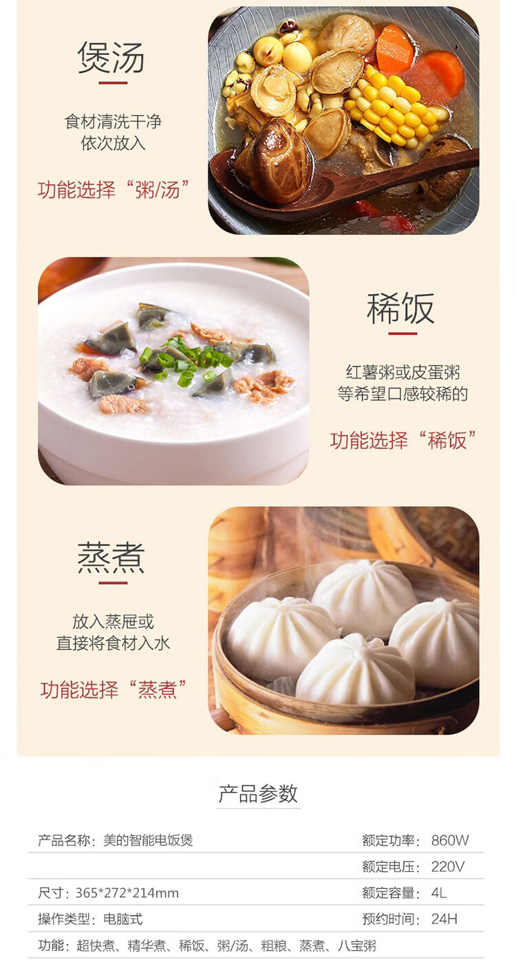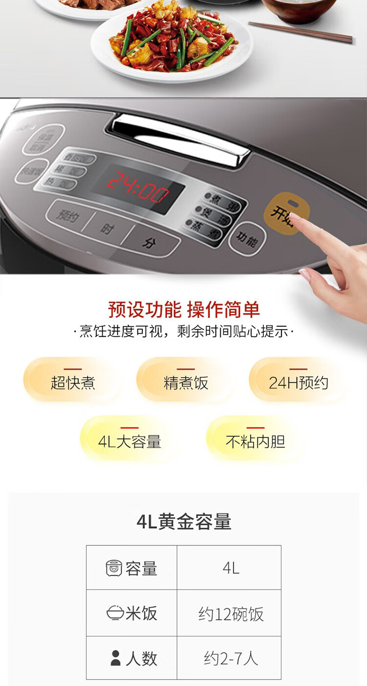 美的电饭煲家用多功能柴火厨房饭电饭RS4098