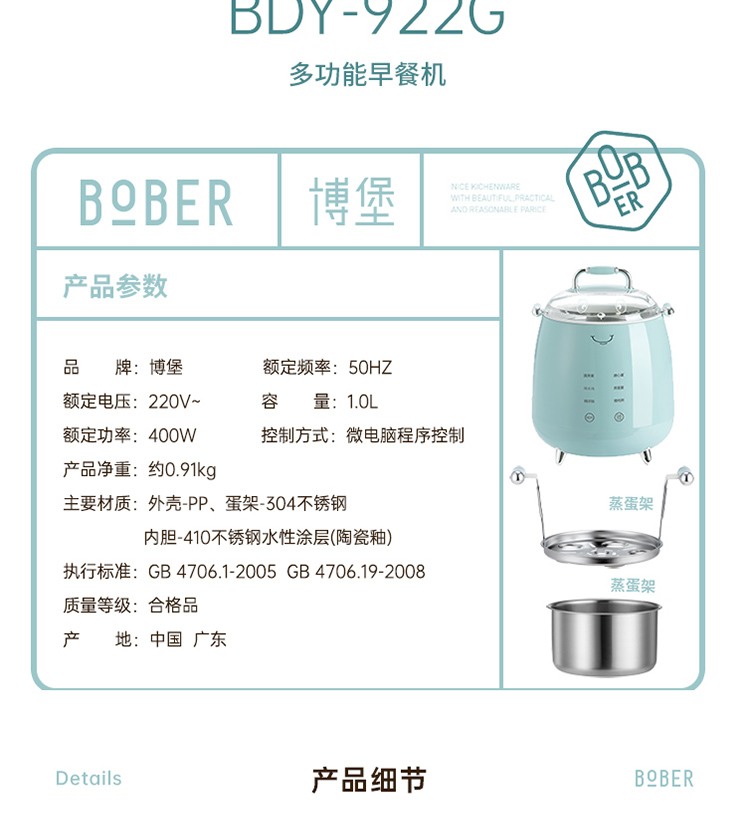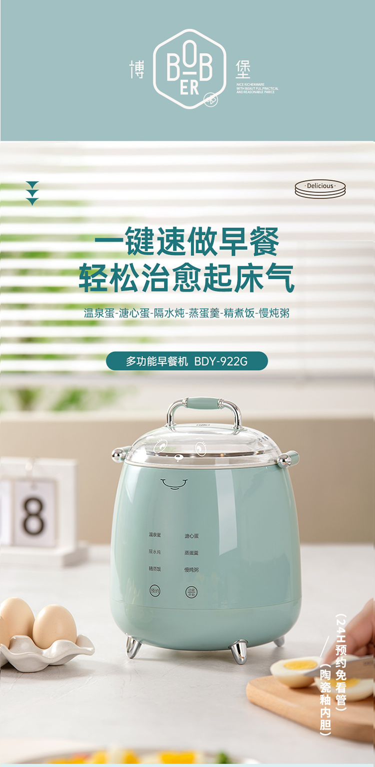 博堡多功能早餐机BDY-922G 家用小型煮蛋神器预约多功能 早餐机