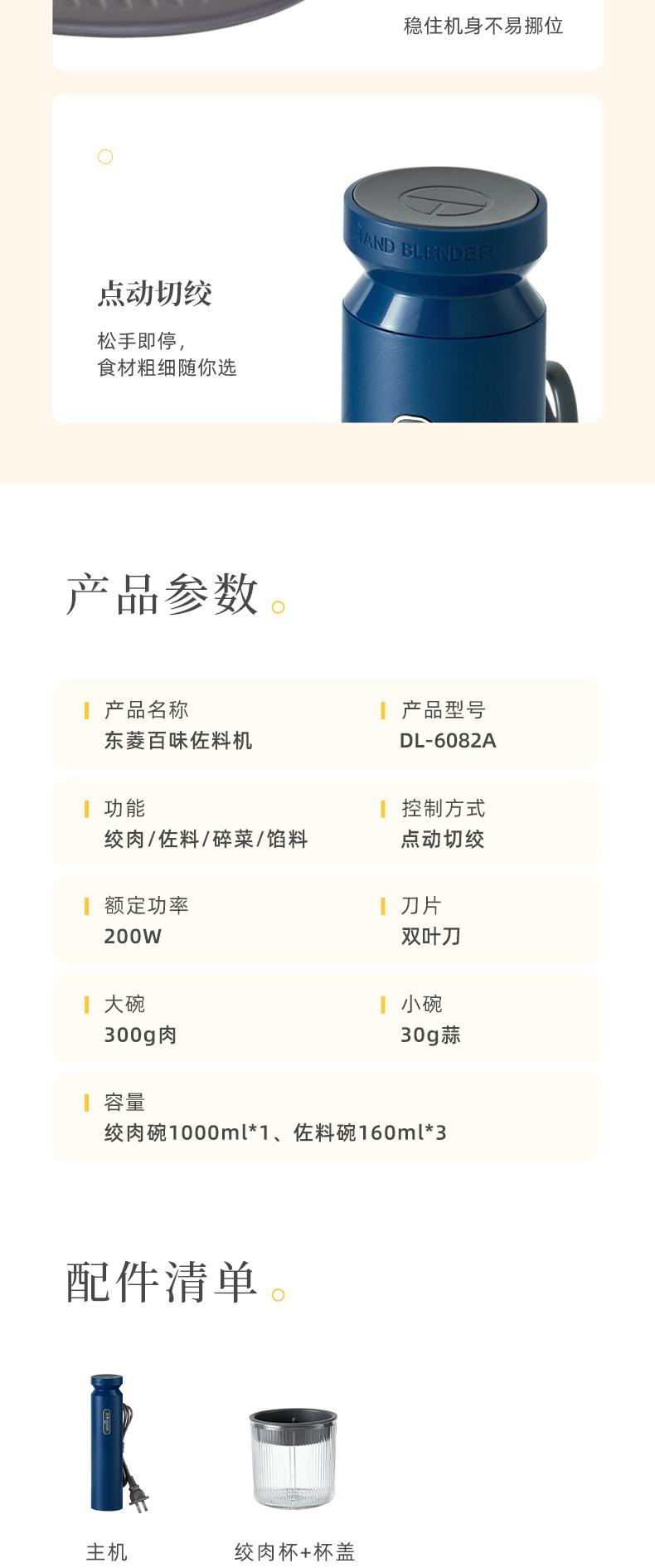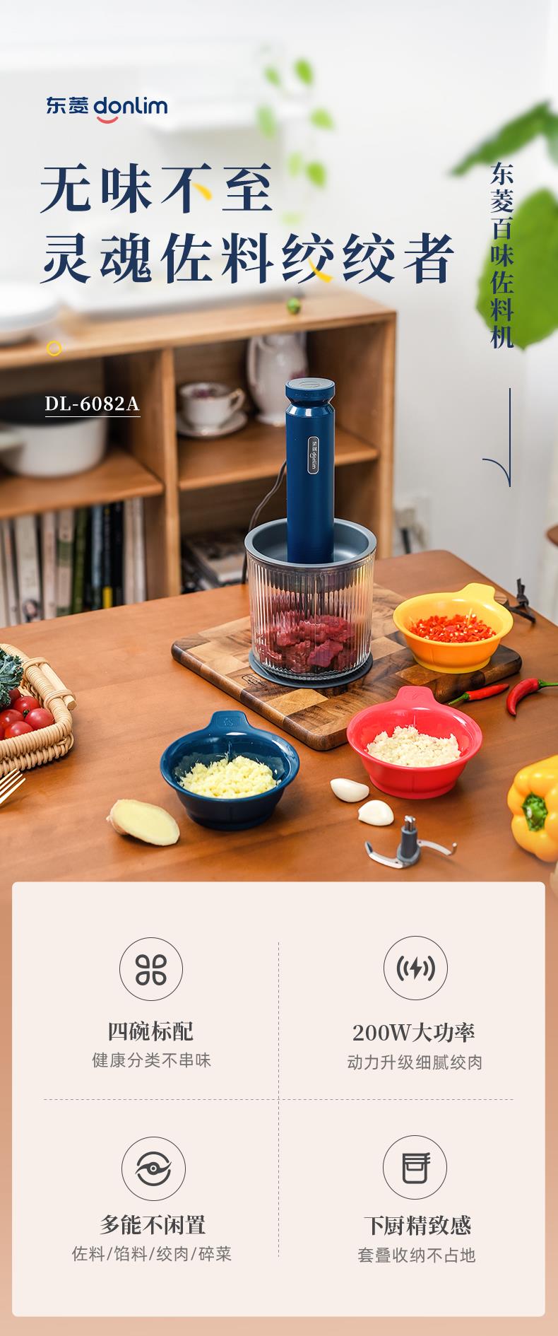 东菱绞肉机家用电动料理机 佐料机 DL-6082A 静谧蓝