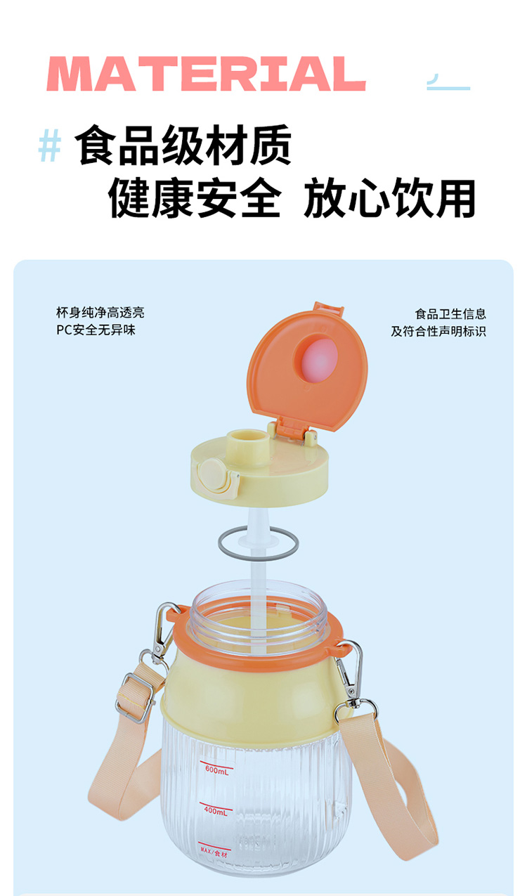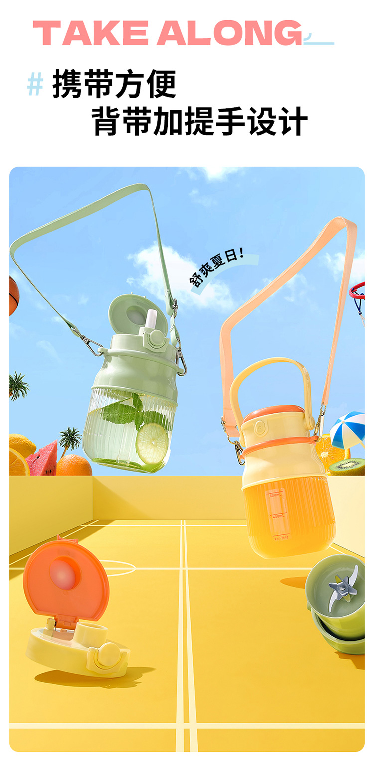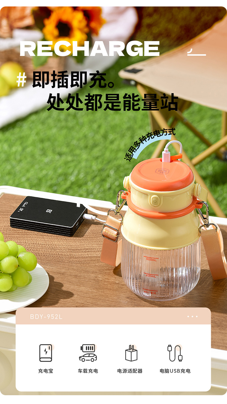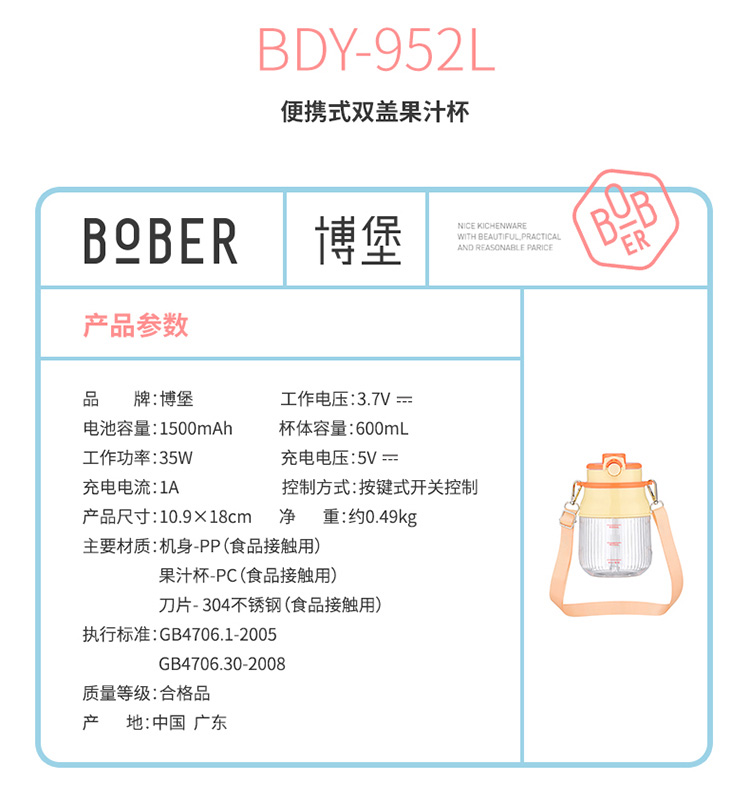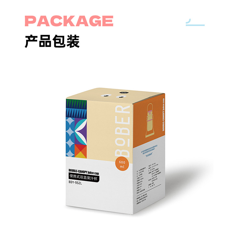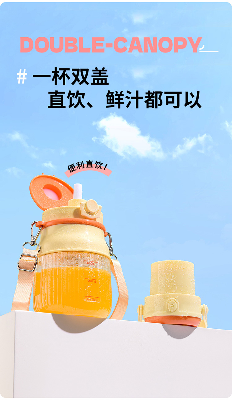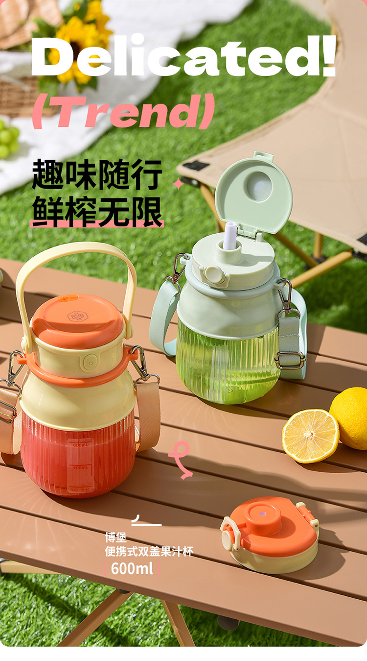 博堡便携式双盖果汁杯BDY-952L 橙色 600ml 1个