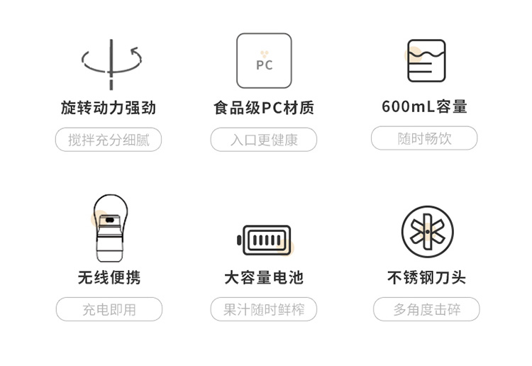主要材质:PP外壳+PC杯体+304不锈钢刀片