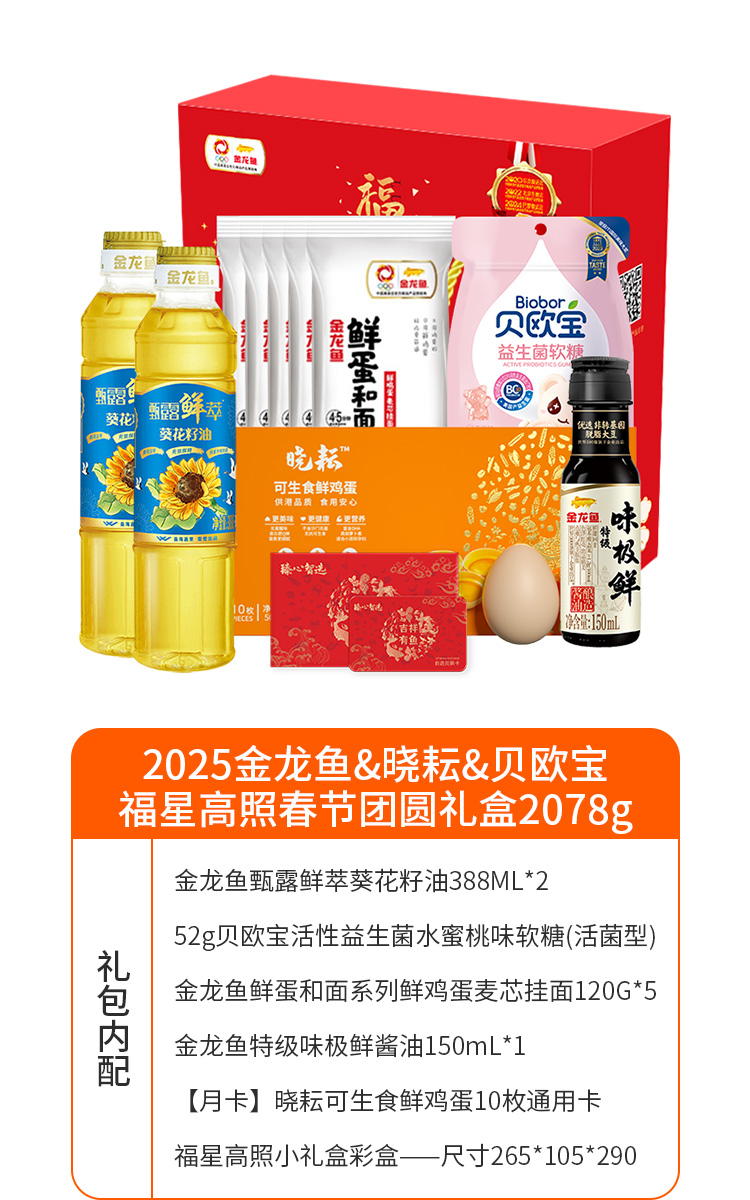2025金龙鱼&晓耘&贝欧宝福星高照春节团圆礼盒2078g 889366